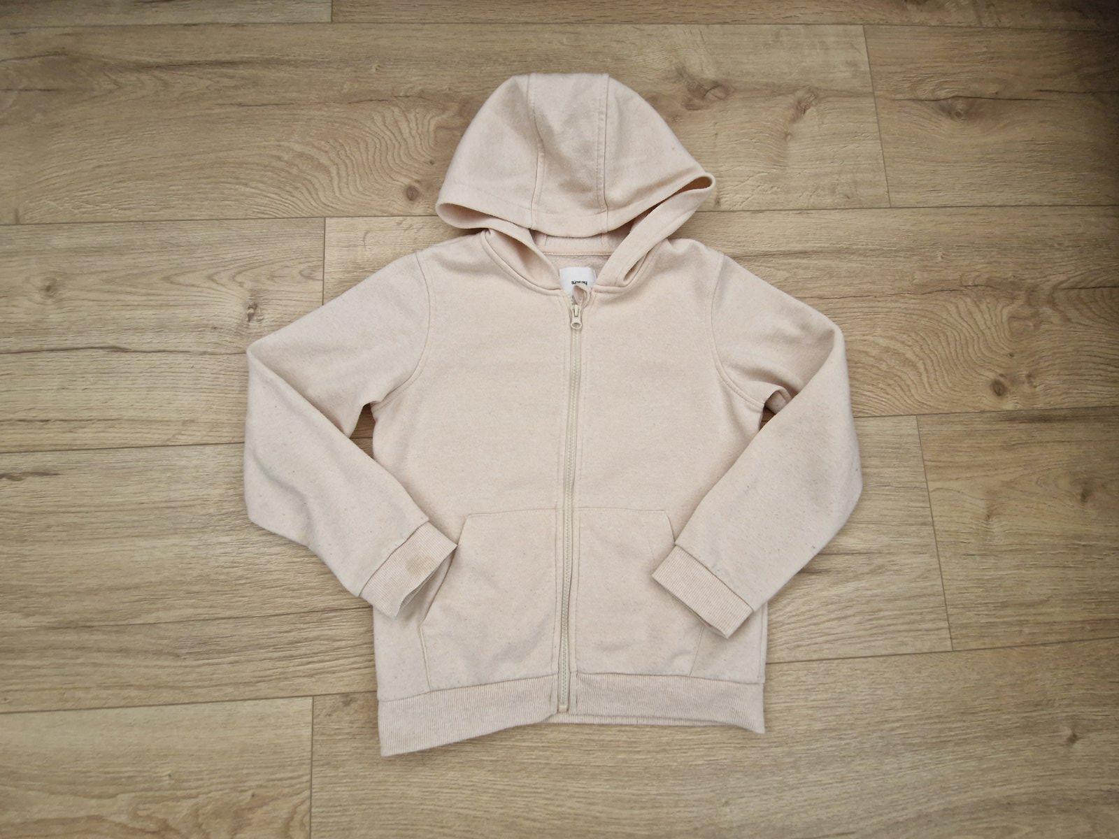 Kremova mikina 140, Sinsay..zmolky, zohľadnené v cene. Dĺžka 52cm, rukáv 48cm, sedielko 7cm.
