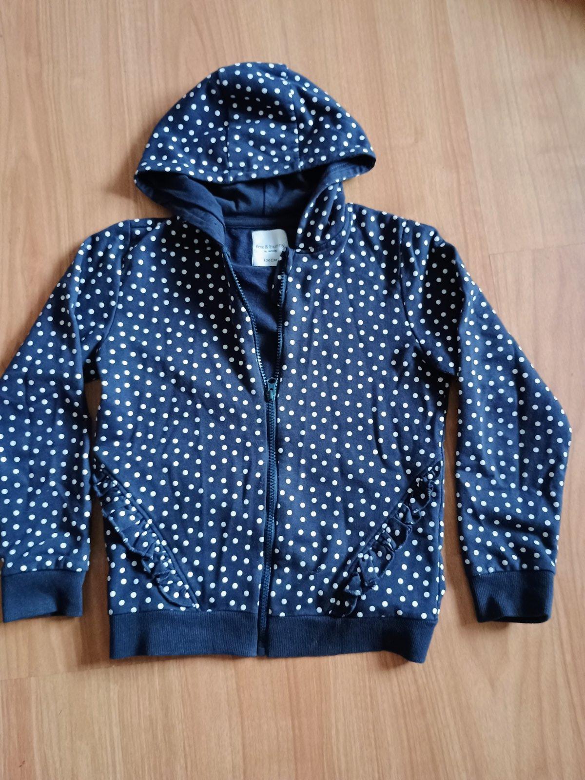Nádherná bodkované mikinka vhodná do školy, bez žmolkov, dĺžka rukáva od krku 56 cm, šírka 2x41 cm