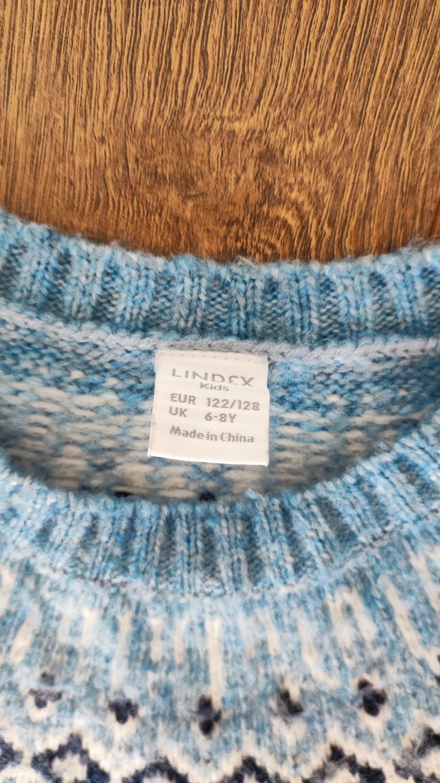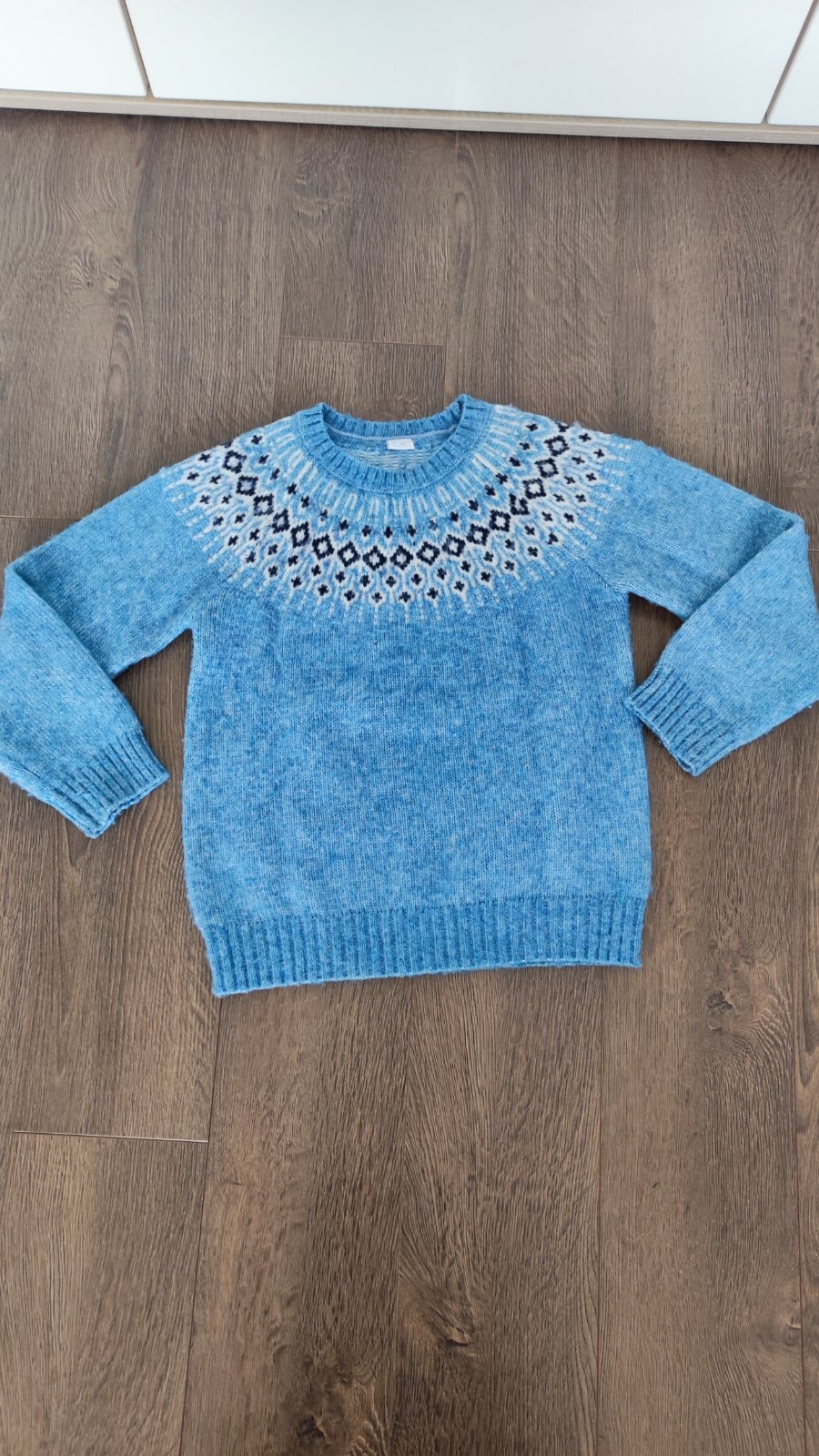 Pulóvrik je teplý a jemný, dobrý stav, málo nosený. Veľkosť je 122-128. Farba modrá. Možno nositeľný aj dlhšie.