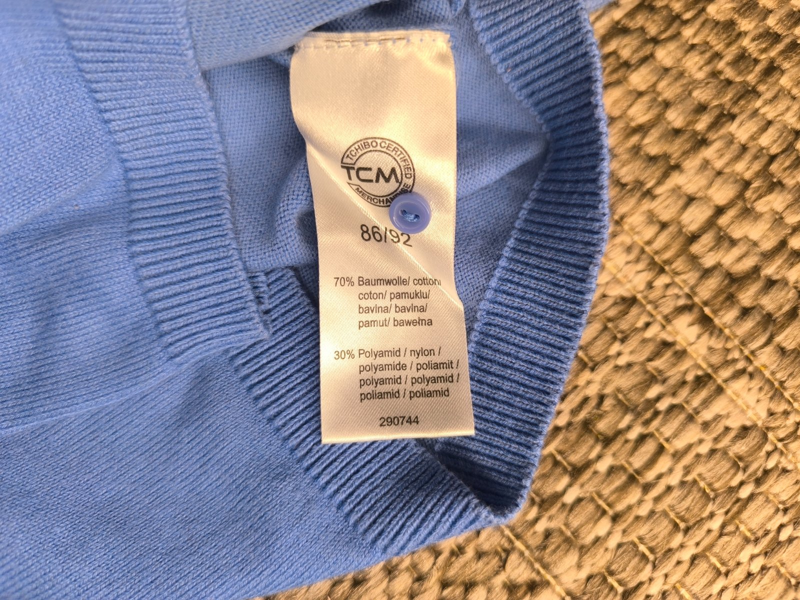 Svetrík vo veľmi dobrom stave. 70% bavlna, 30% nylon. Jemný, tenší, vhodný skôr na teplejšie obdobie, prípadne pod bundičku, či kabátik. Veľkosť 86/92, dĺžka 37cm, šírka 28cm, rukáv od krku 41cm.