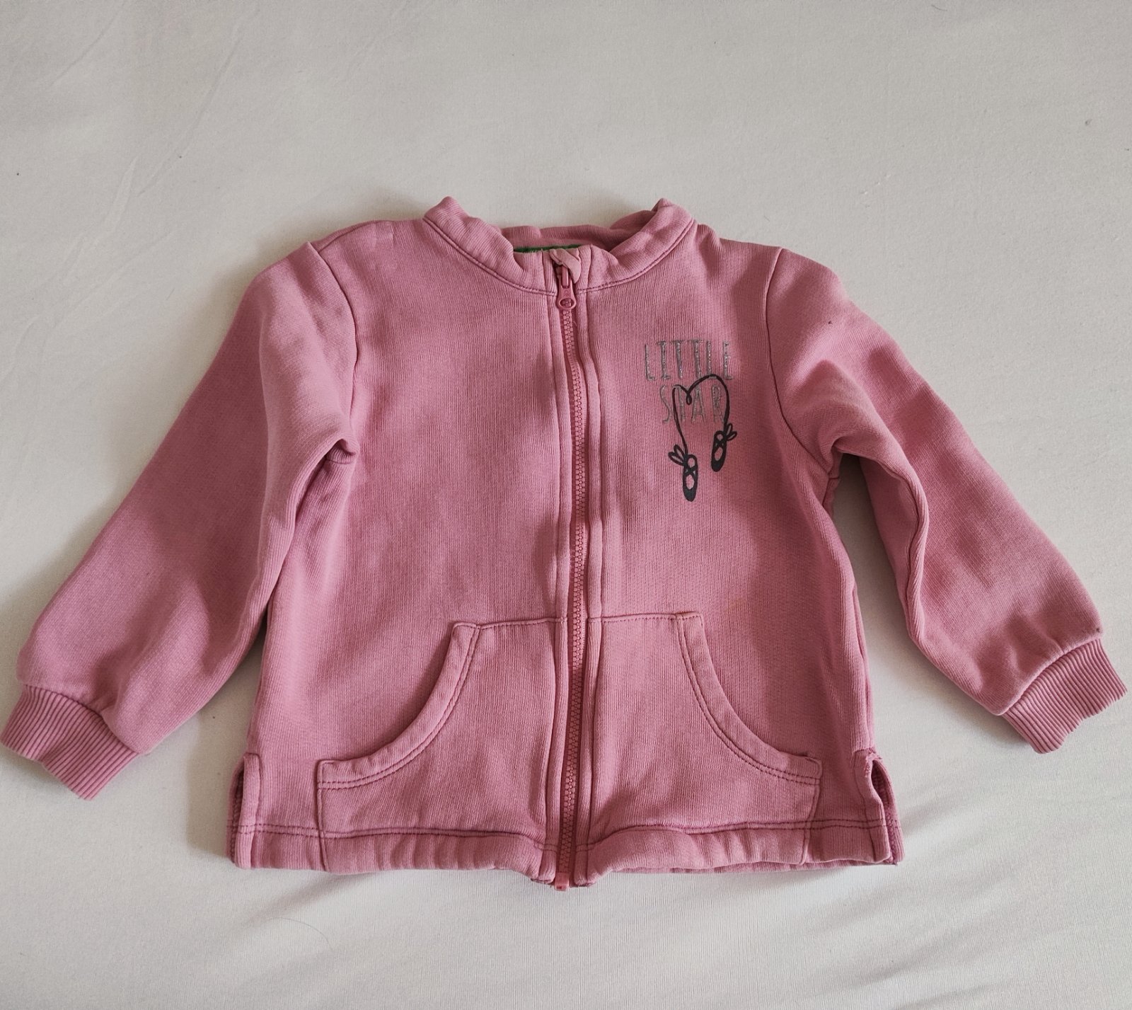 Krásna žiarivá mikina na zips,taka tenšia. Na cca 2r/90cm. Nosená minimalne,bez poškodenia.