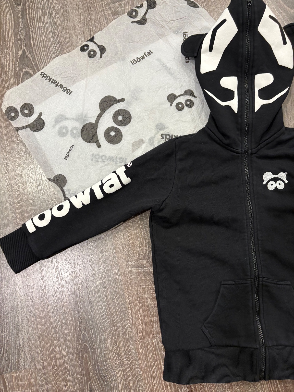 010.Loowfat peckova chlapcenska mikina kde sa da kapucna zazipsovat az uplne dohora a vznikne taka maska,imidžovka,velkost na 4-5 rokov,dlzka je 49cm,dlzka rukava od krku je 50cm a sirka v podpazusi je od 38x2cm do 42x2cm