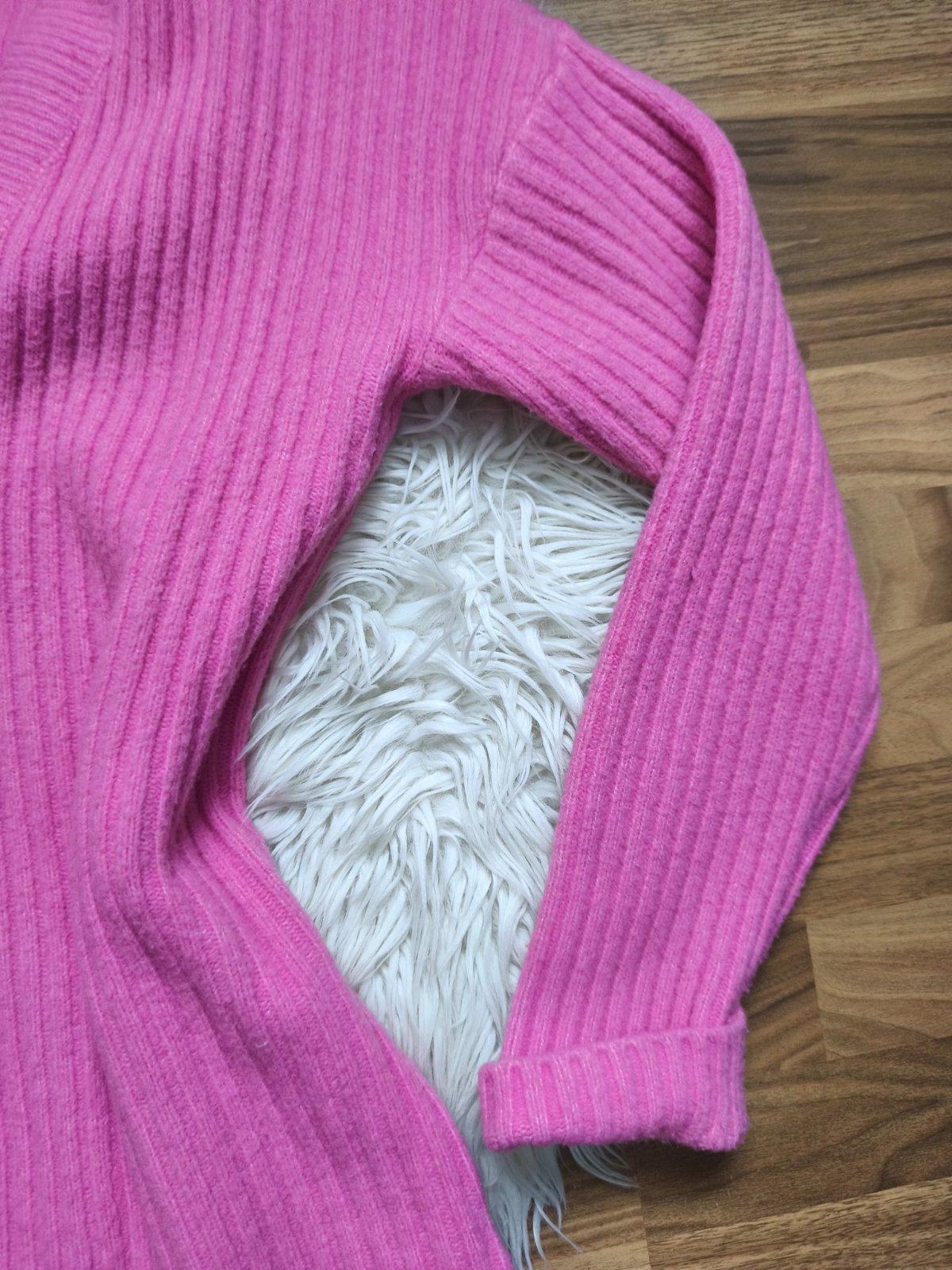 Dámsky štýlový sveter, oversize strihu, má zmolky, treba ho odzmolkovat.