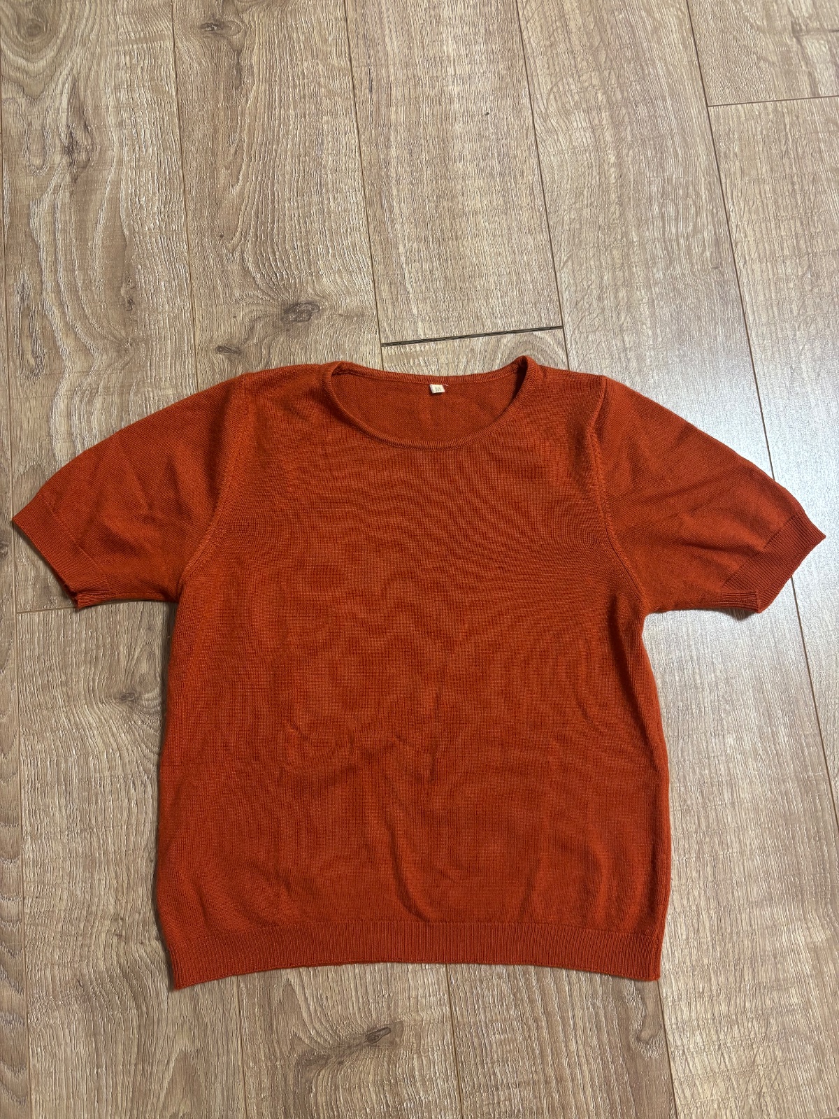 Pulover s kratkym rukavom, zlozenie 50% merino, 50% akryl. Strih do pasa.