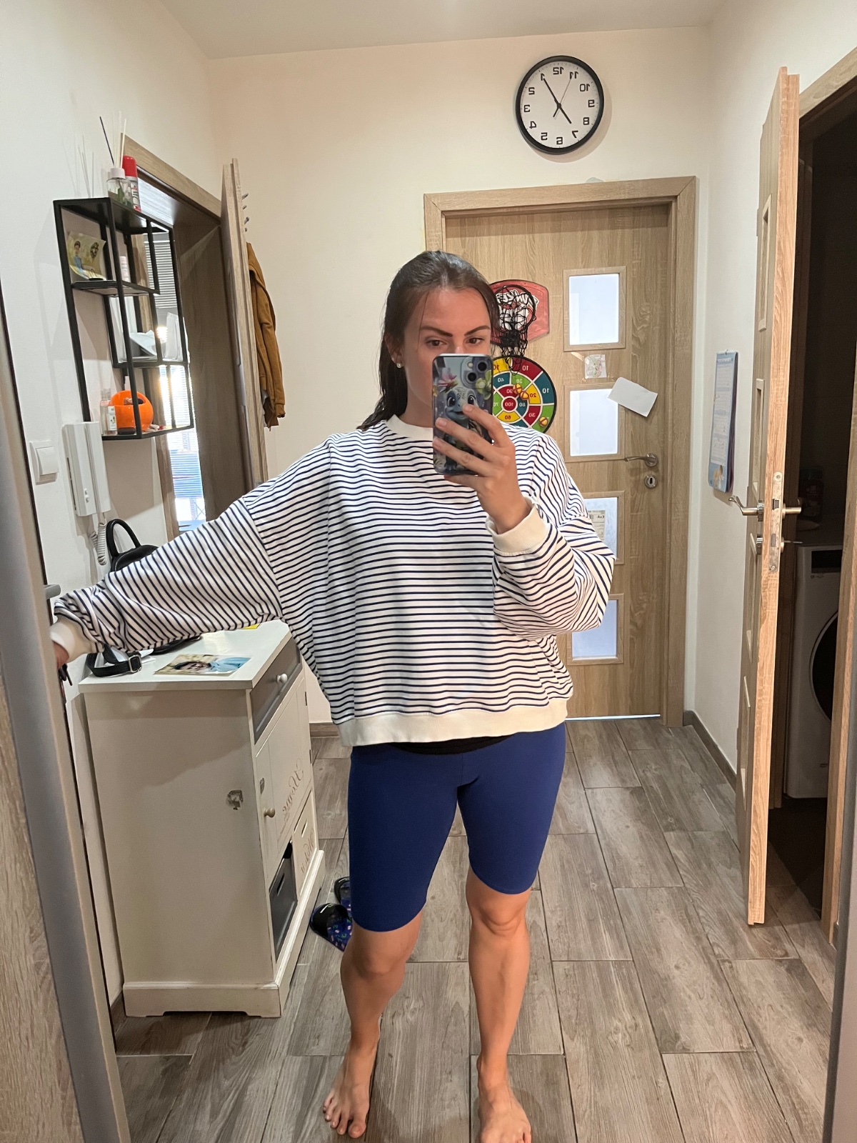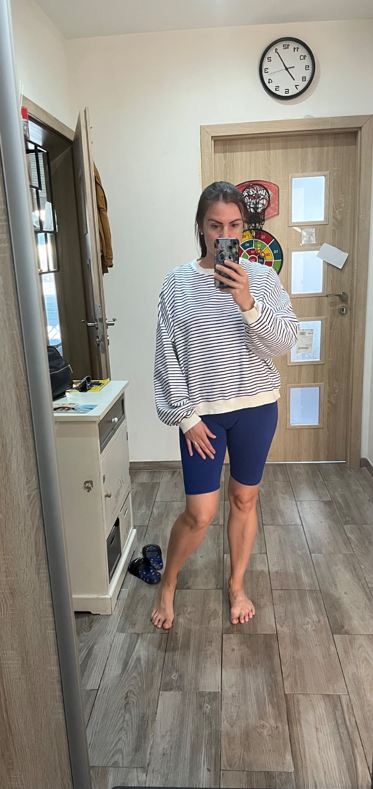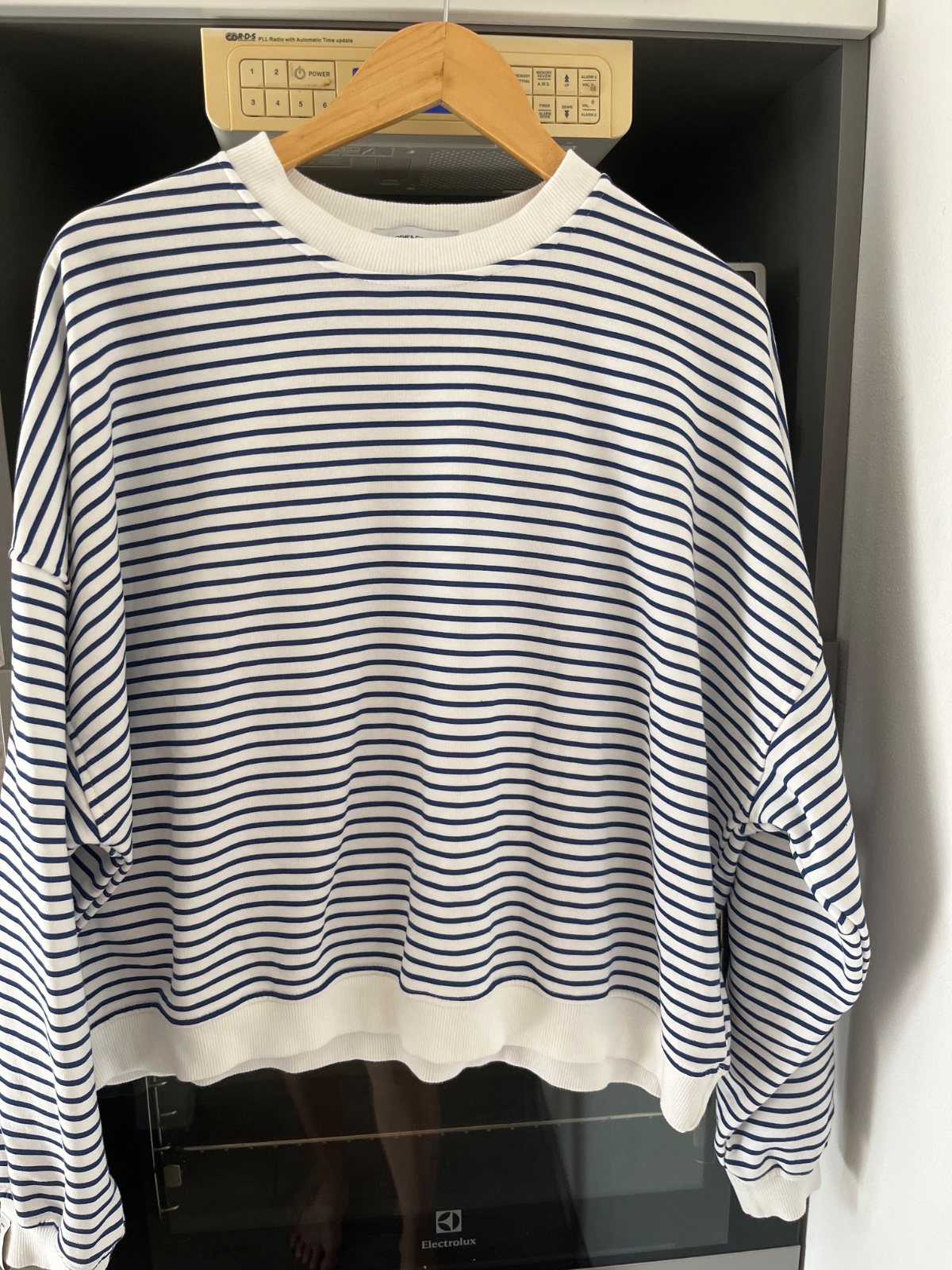 Len vyprata a vyskušana. Je naozaj oversize, takze kludne podla mna sadne aj na vacsie velkosti. super material, nie je zateplena. ( 95% bavlna, 5% polyester) Pasiky nie su az take tmave ako posobia na foto.