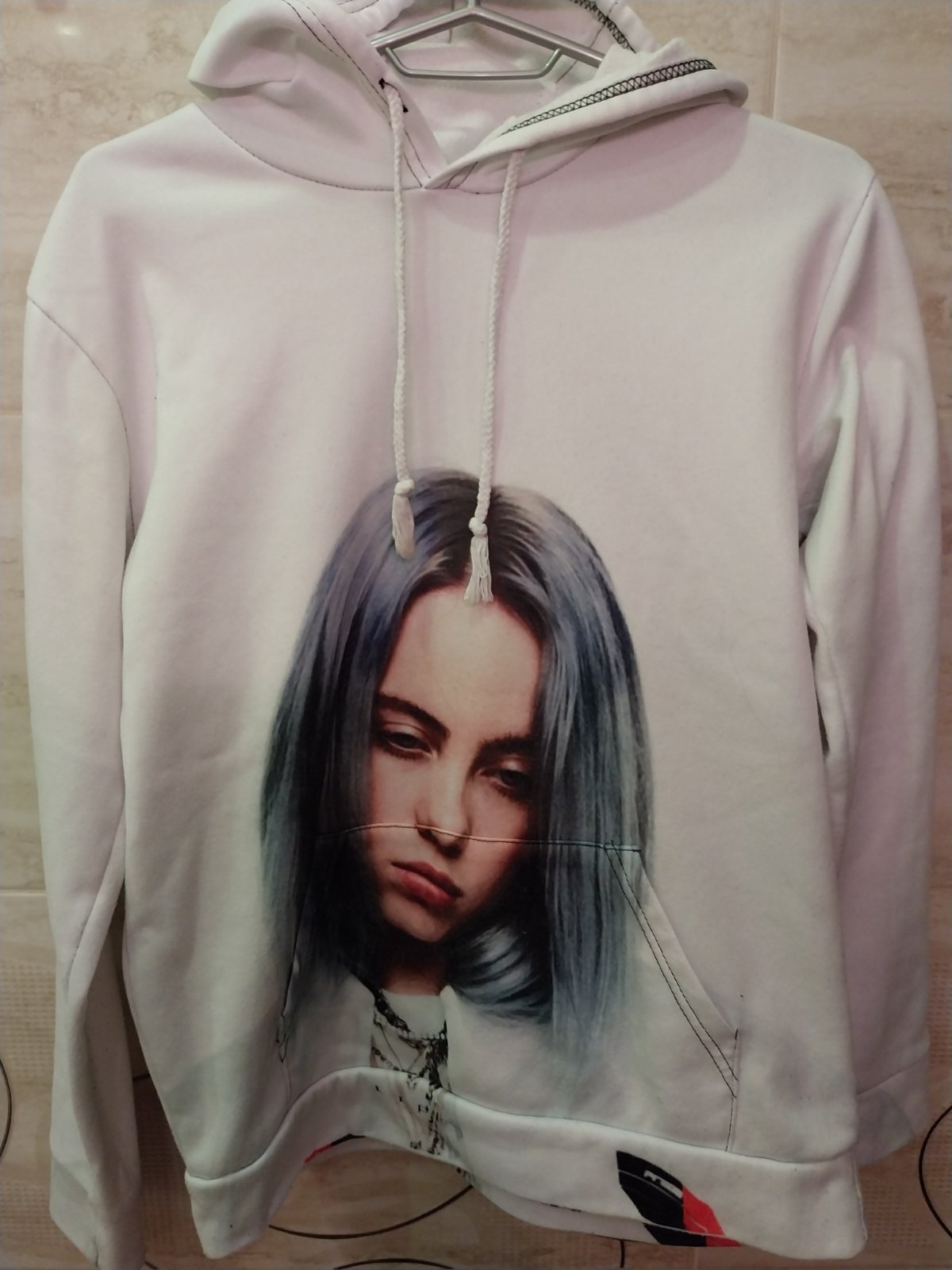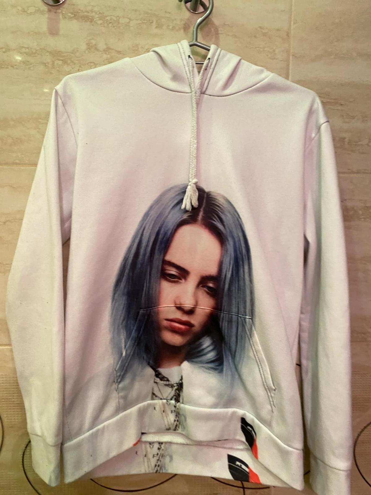 Posuniem mikinu Billie Eilish, nosená.