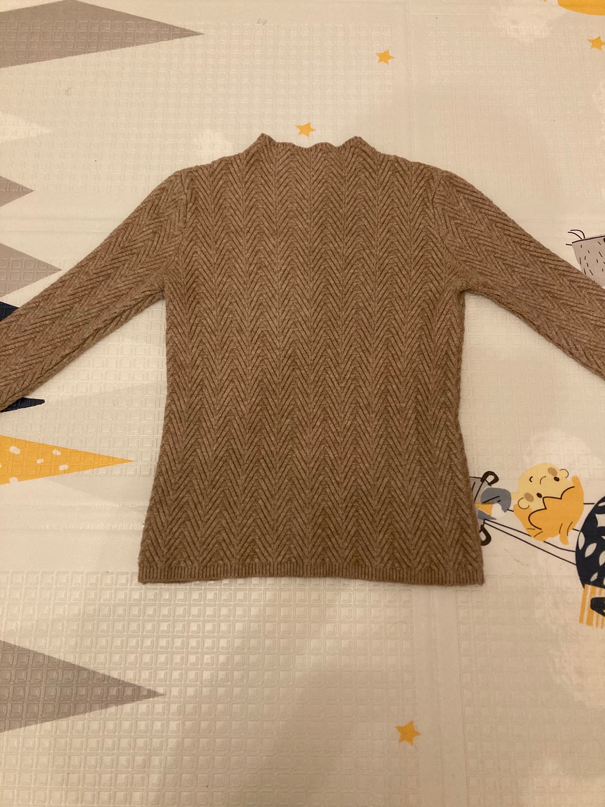 Teplucky, velmi prijemny hebky material, krasny pleteny vzor, hnedej karamelovej farby, zahreje. Ako novy.