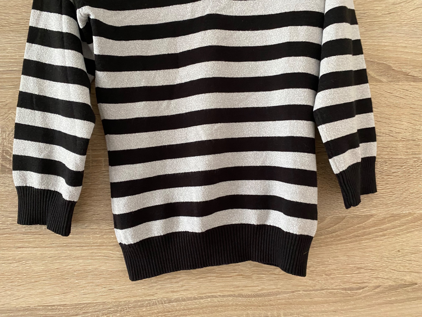Svetrík šedočiernej farby, dlžka 51cm, trojštvrťový rukav, obvod hrude 2x34cm