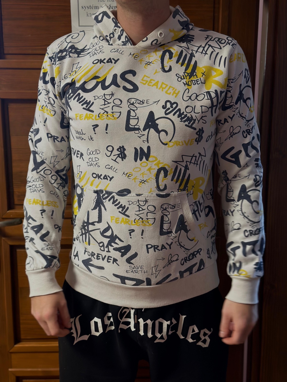 Street‑stylová mikina s kapucňou a výraznou celoplošnou grafickou potlačou.