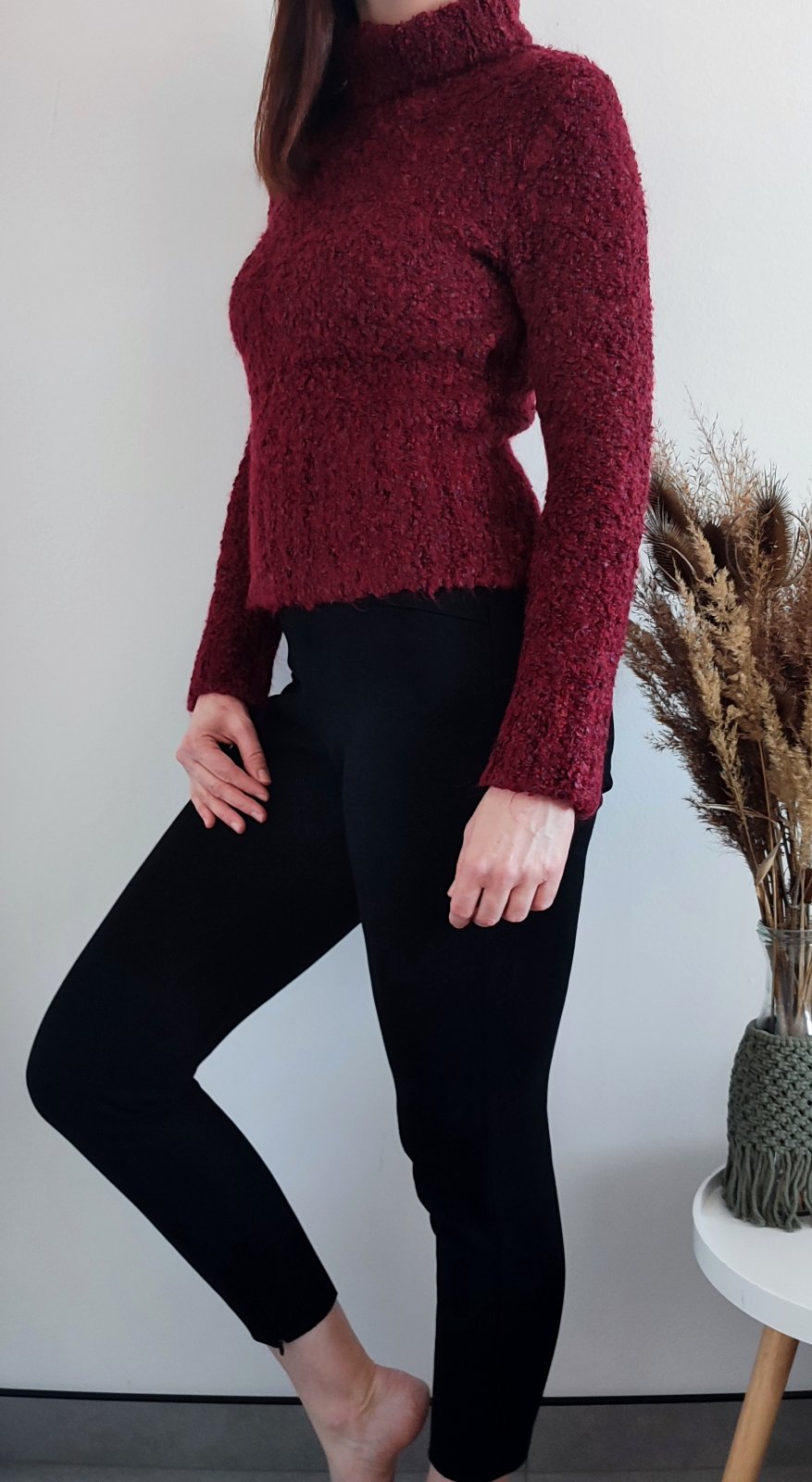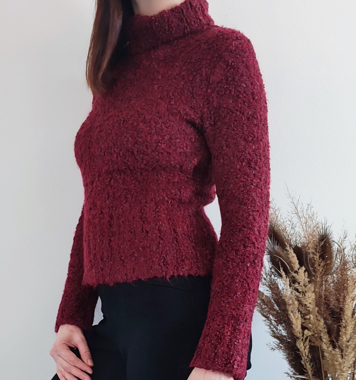 Bordový rolákový sveter v top stave