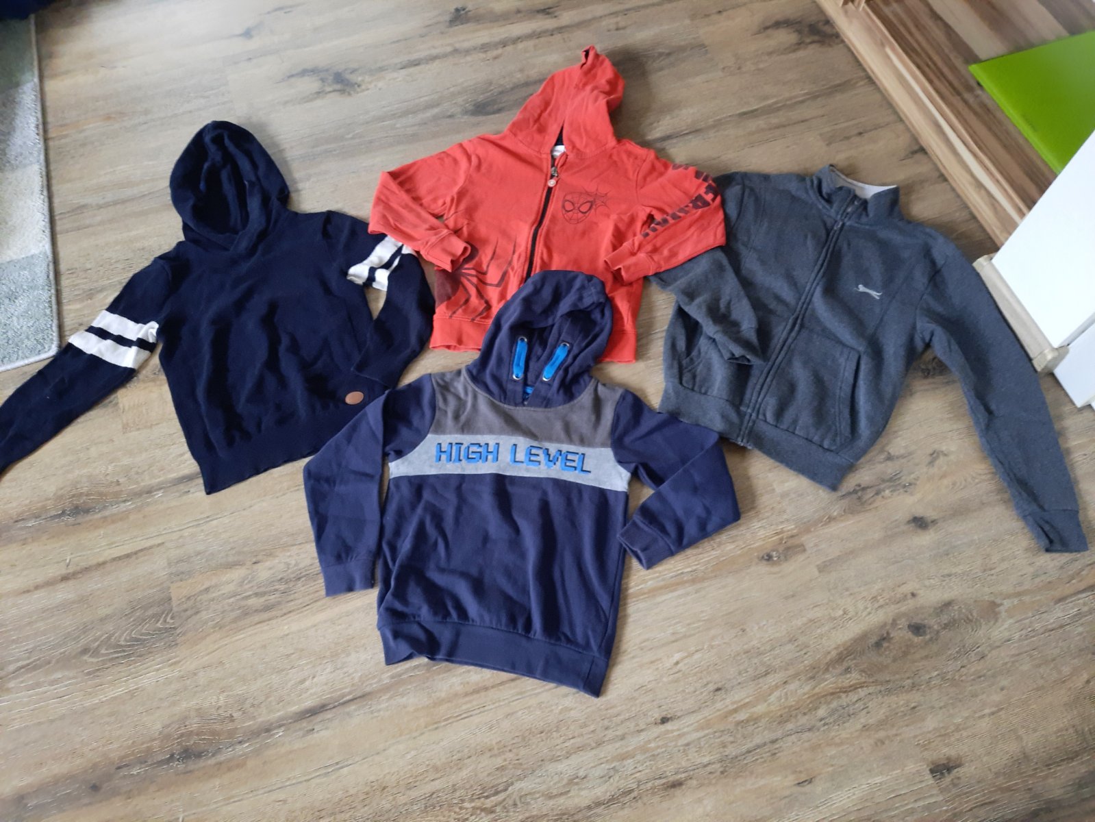 Predám mikiny cena a svetrik .....cena 3e tmavomodrá,červená 4,5e čierny svetrik 4e šedá mikina 5e cena spolu 14e