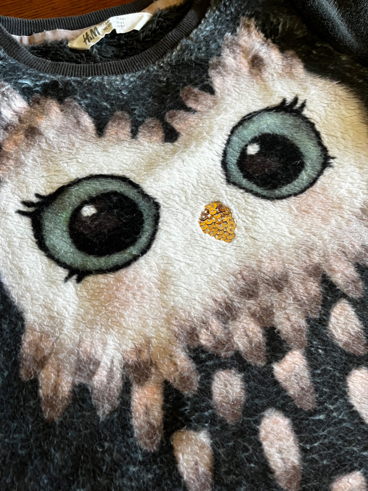 Teplá chlpatá mikina so sovičkou 122/128