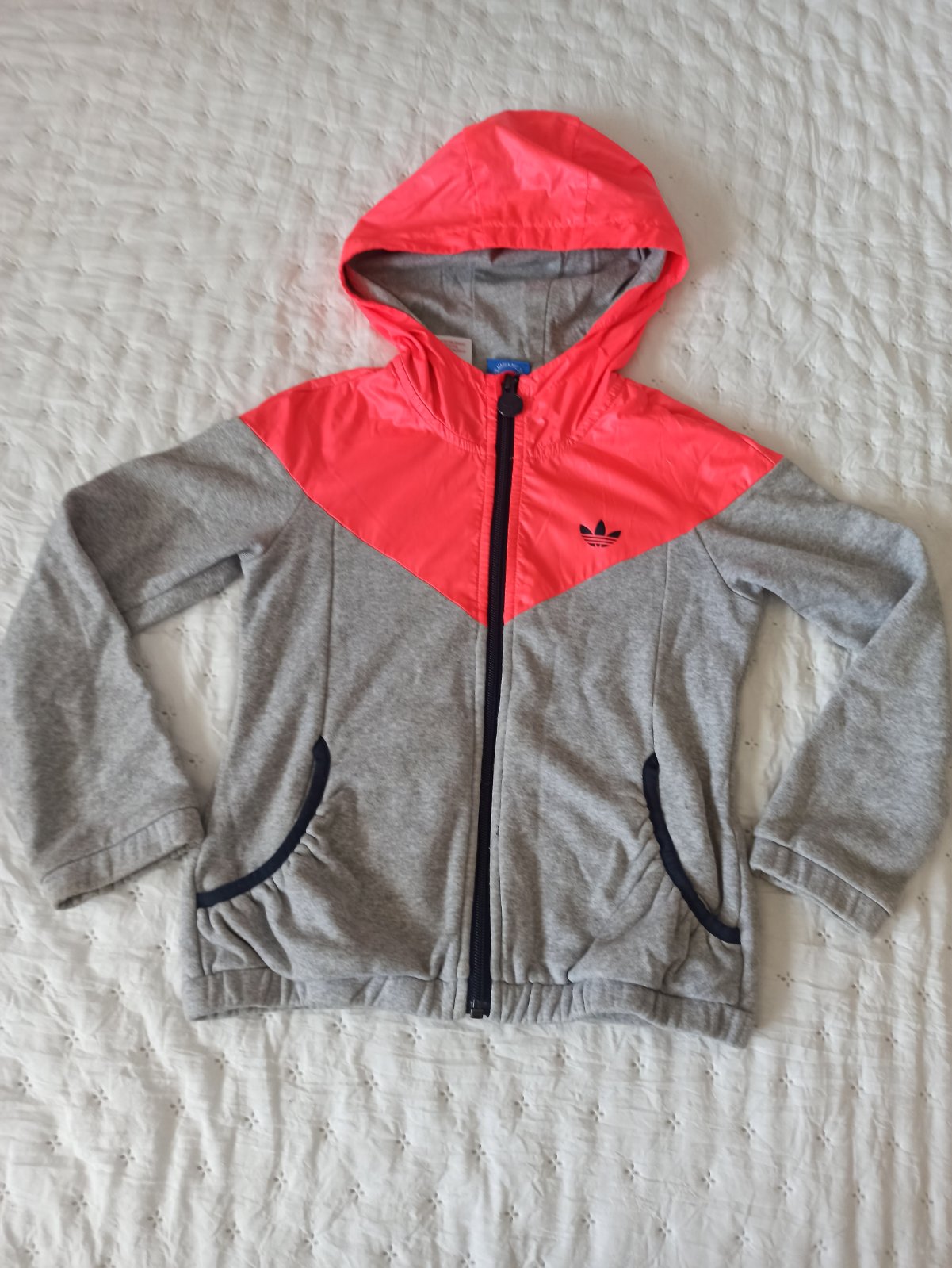kolekcia originals, mikina je užšieho strihu, trochu dlhšia, veľmi dobrý stav, jedine na kapucni je mala zelena bodka a takmer nevidno malú ruzovu, asi od fixky (vid foto)