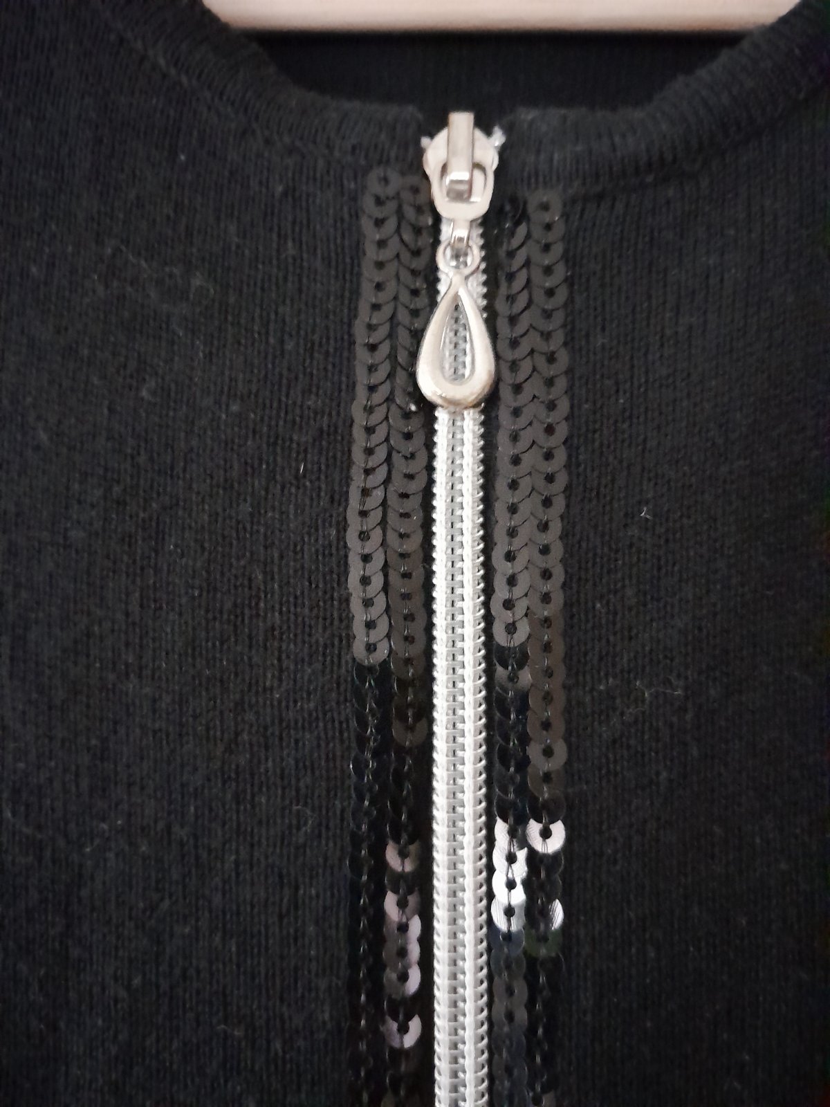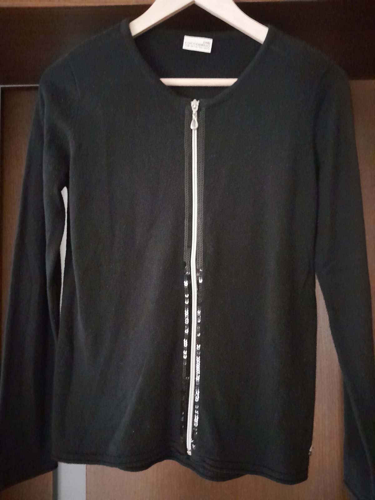 Sveter na zips. Po obidvoch stranách zipsu čierne flitre. Vo výbornom stave. Kupované nové.