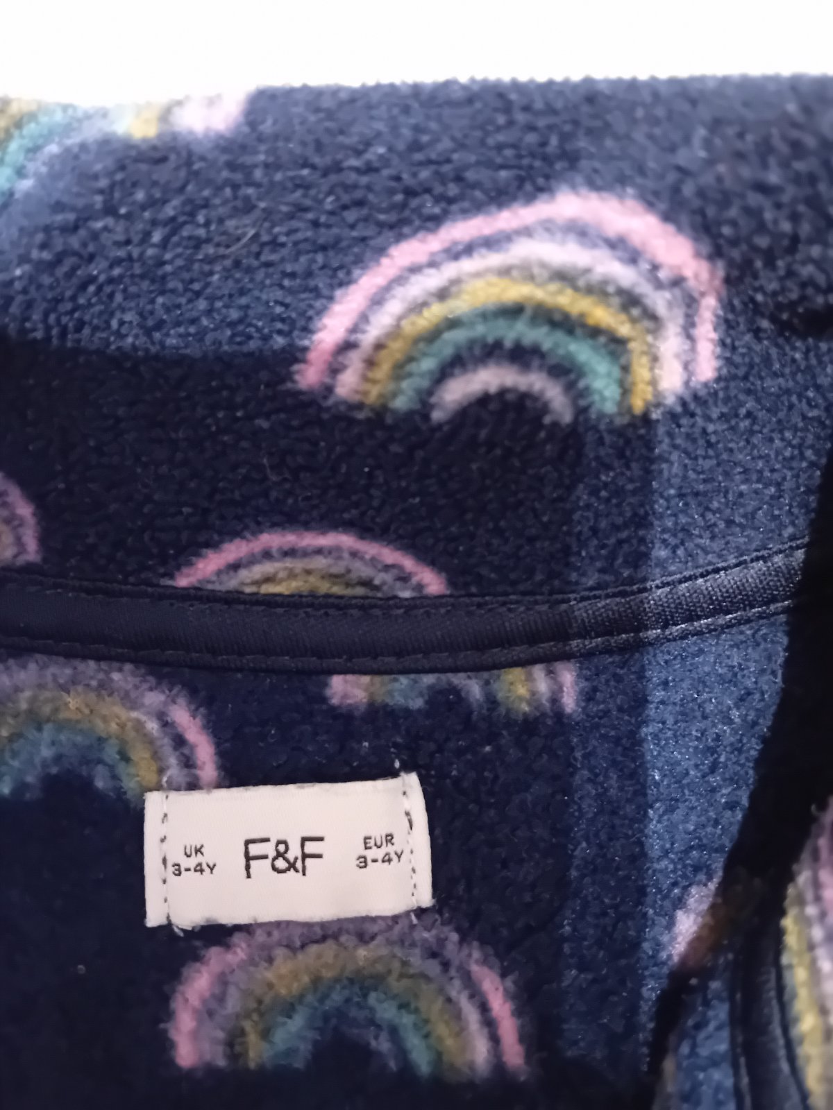 Flisova mikina, nosena ale bez poškodení, nemá fľaky, diery a zips tiež funguje.