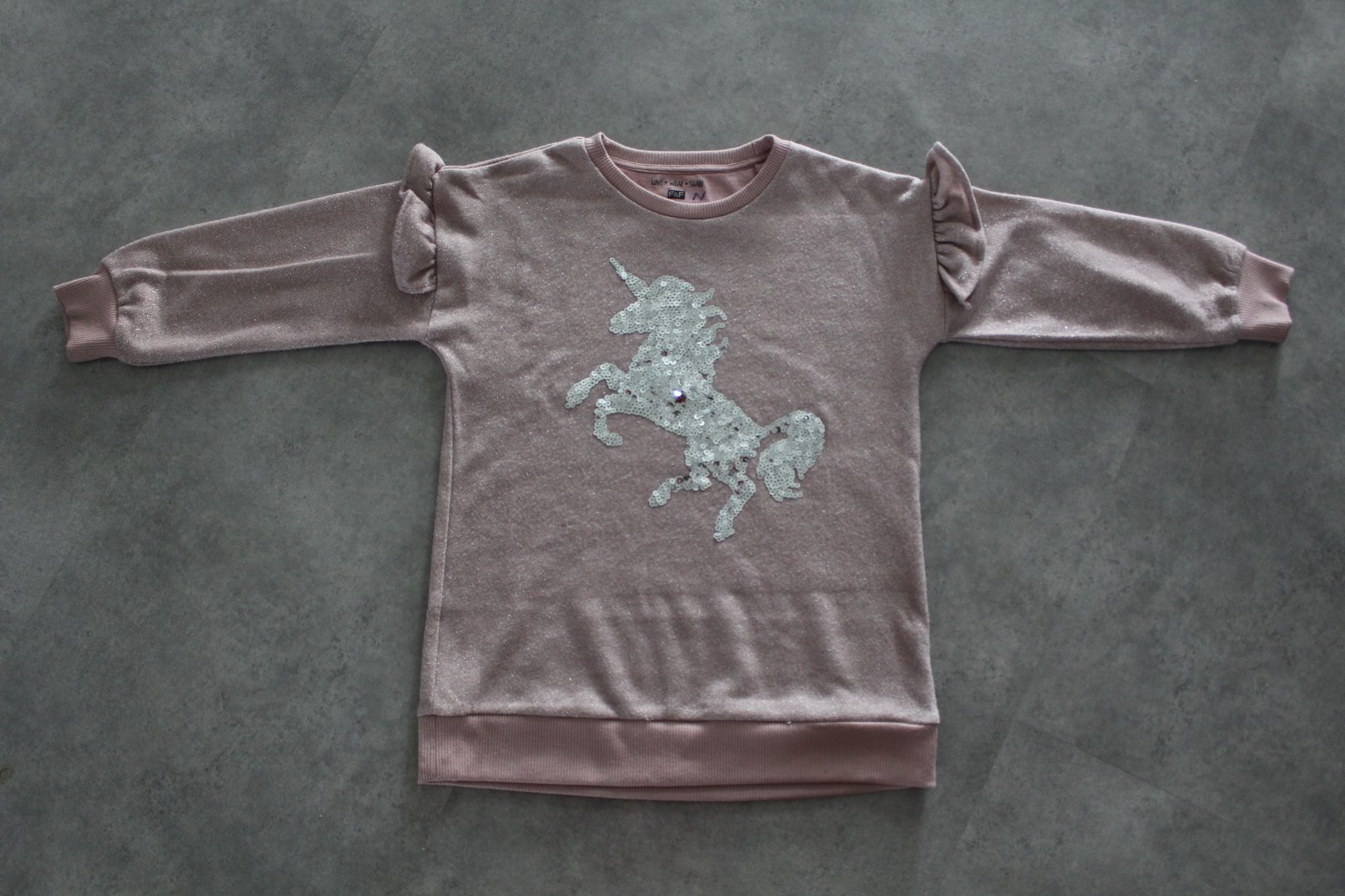 Krásna teplá mikina s jednorožcom, s príjemného hebkého materiálu, nová, kúpili sme žiaľ malé číslo, veľ. 134, vek 9-10r., dlžka 56cm, rameno+rukáv 61cm, hrudník 40x2