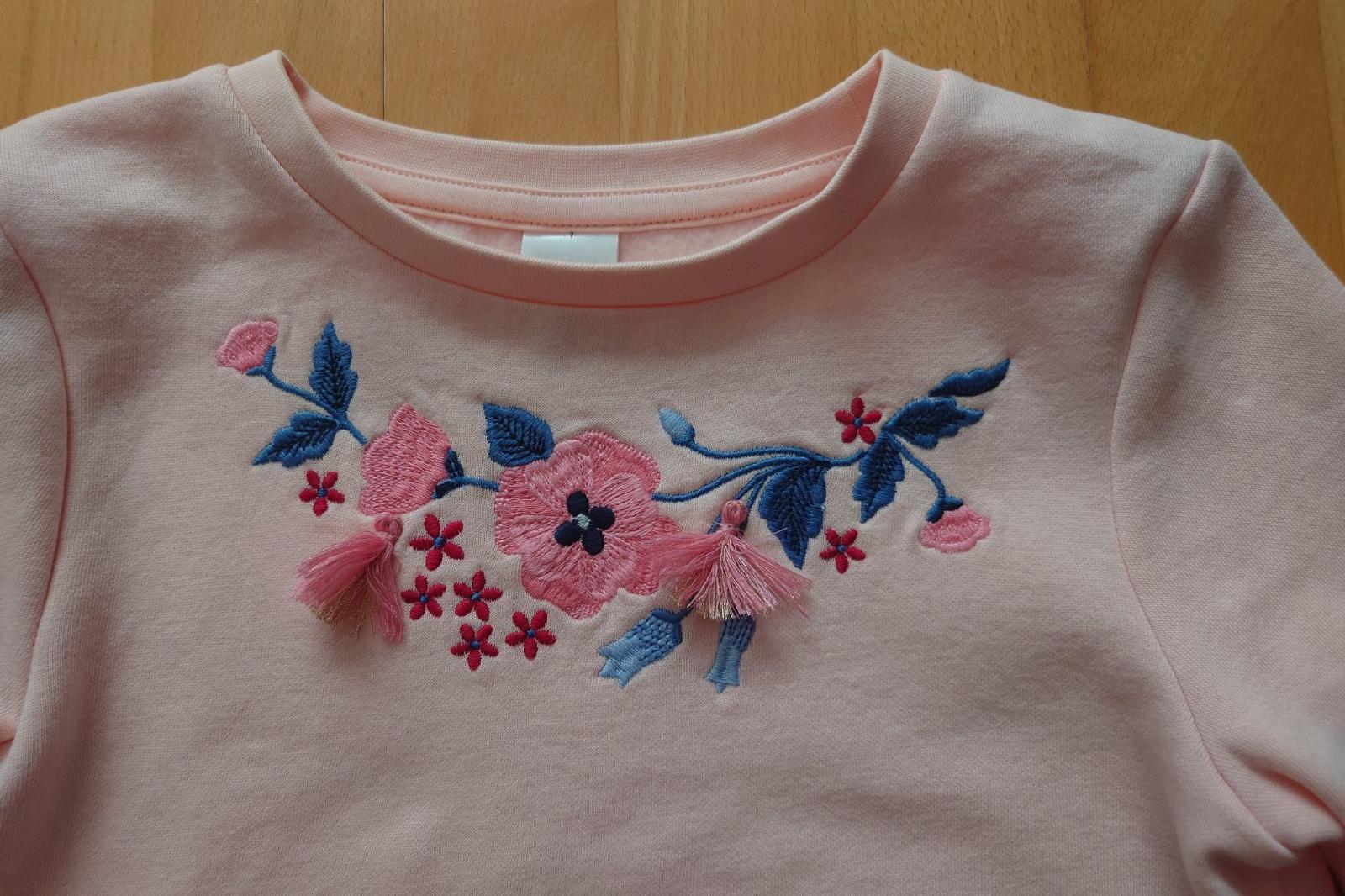 Krásny teplejší sveter s vyšívanými kvetmi a volanovym rozparkom na bokoch