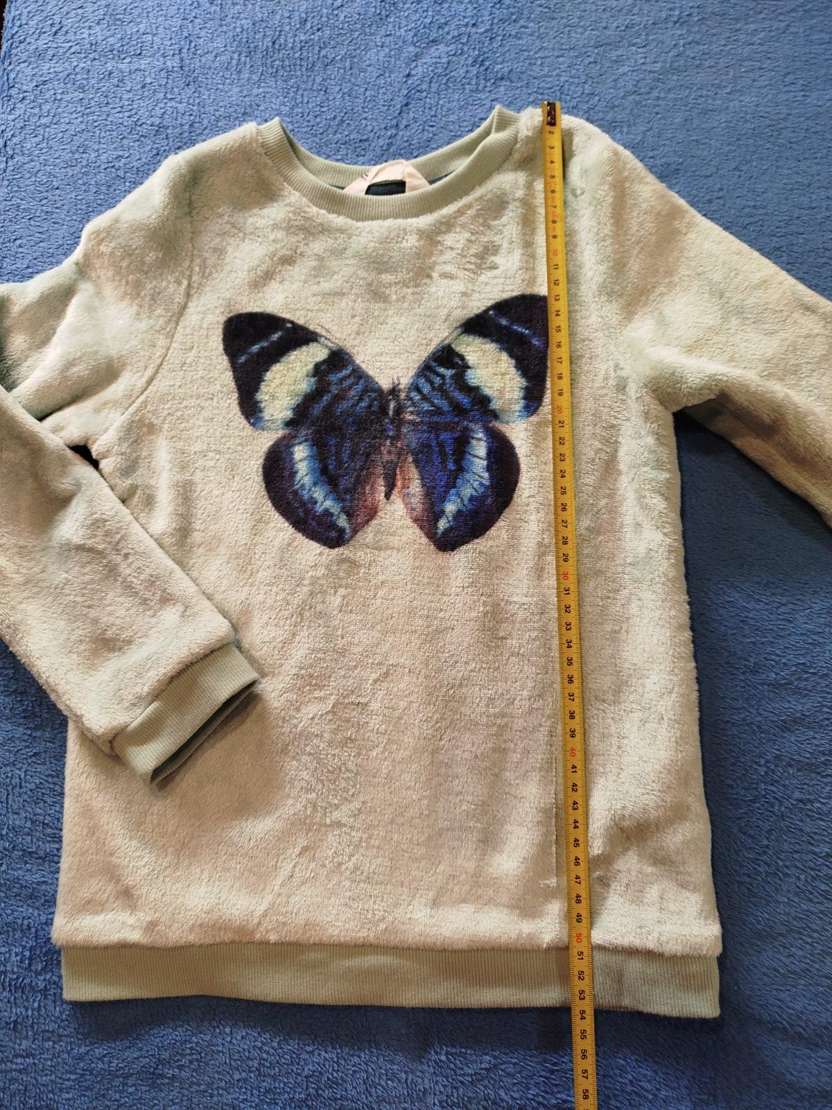 Predám teplú huňatú mikinu jemnej mintovej farby s aplikáciou medvedíka v dobrom nosenom stave. Na rukávoch jemne vidieť nosenie, inak krásna bez fľakov.