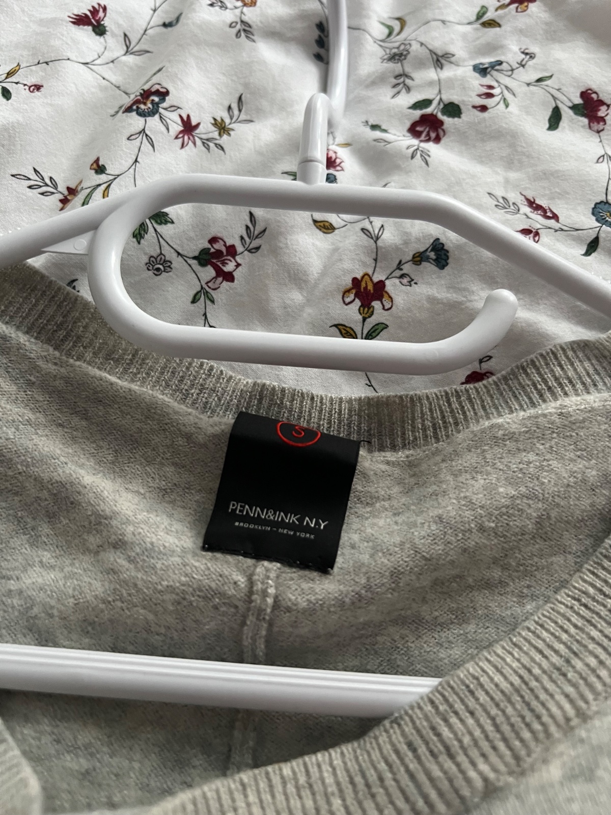 Svetlosedy svetrik TH, obleceny 1x, kupeny v usa. Dlzka 62 cm, širka v podpazusi 41 cm, rukav 60 cm