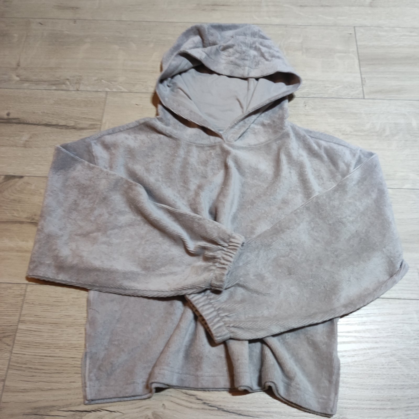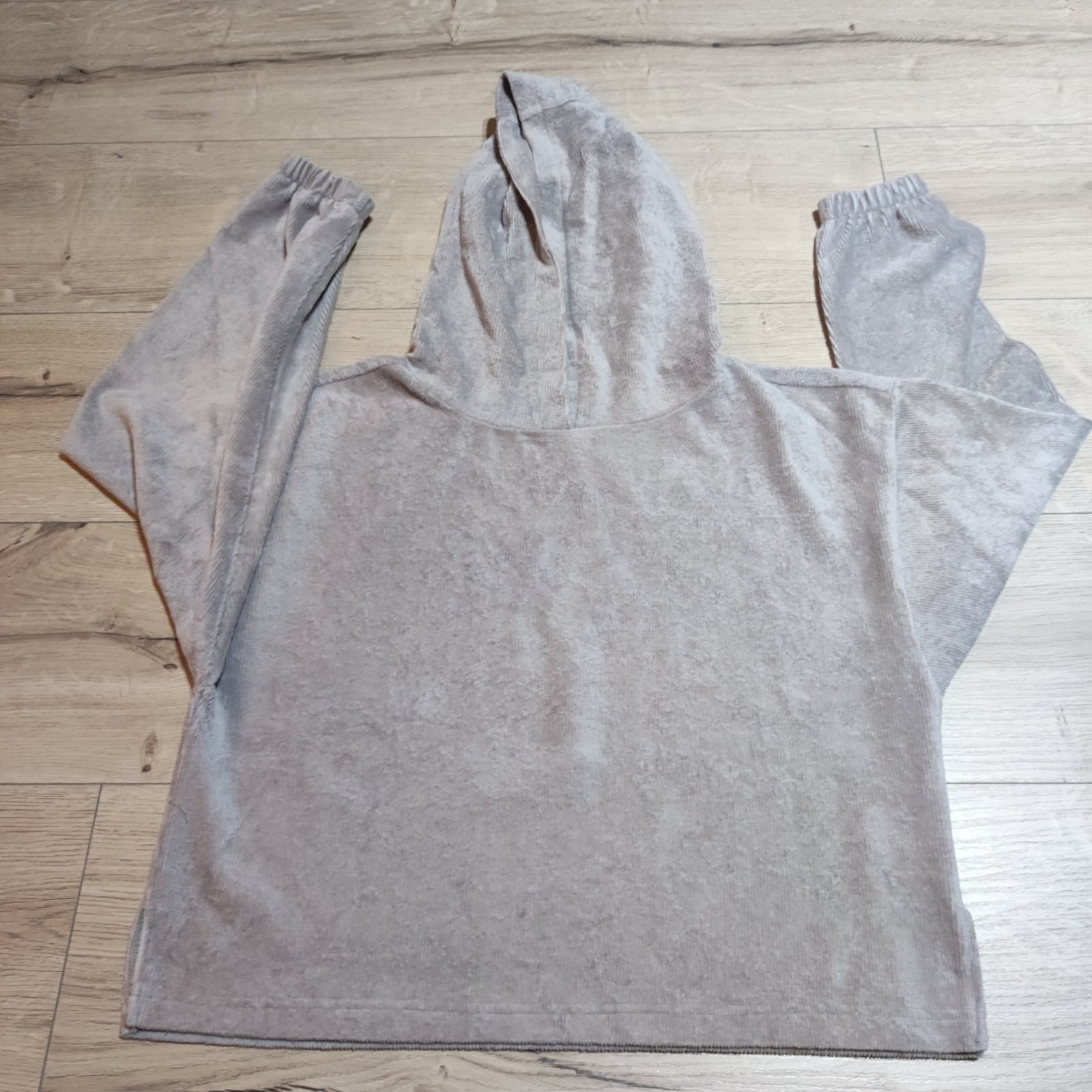Raz oblečená,rýchlo vyrástla,po boku má rozparky,je voľnejšia,dĺžka 47 cm,šírka cez prsia 50 krát dva ,rukáv meraný od pleca 62 cm