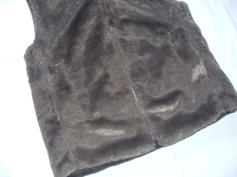 Vesta s kapuckou z umelej kožušiny zn. Zara, podšitá, bočné funkčné vrecká, zapínanie na zips.