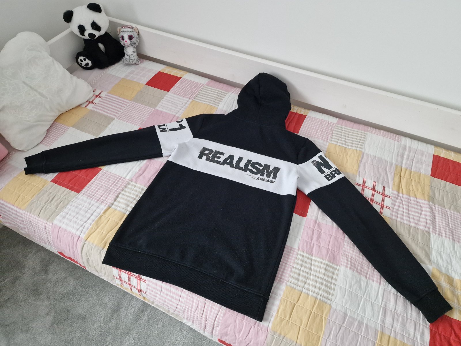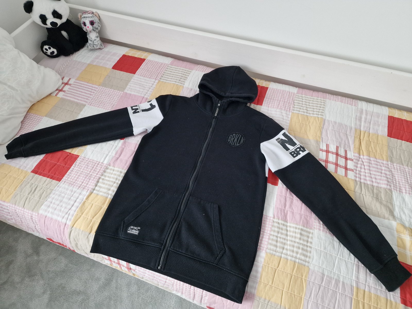 Zachovalá mikina pre chalana. Nosená, ale veľmi dobrý stav, akoby ste vytiahli zo skrine. Tak cca 176 cm. Možno 14-16 r. Dĺžka 71 cm, pod pazuchami 51 cm, rukáv od ramena 67 cm, od krku 67+9 cm.