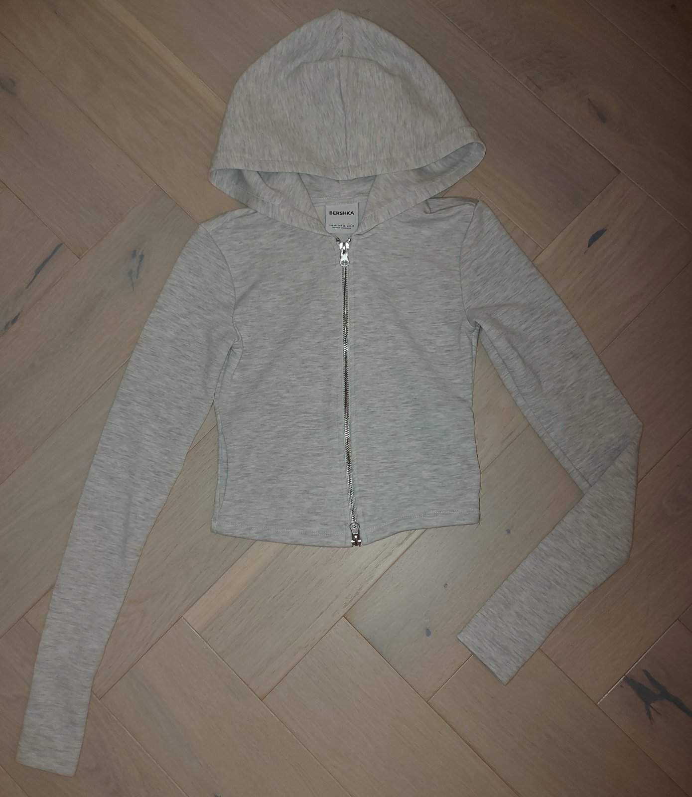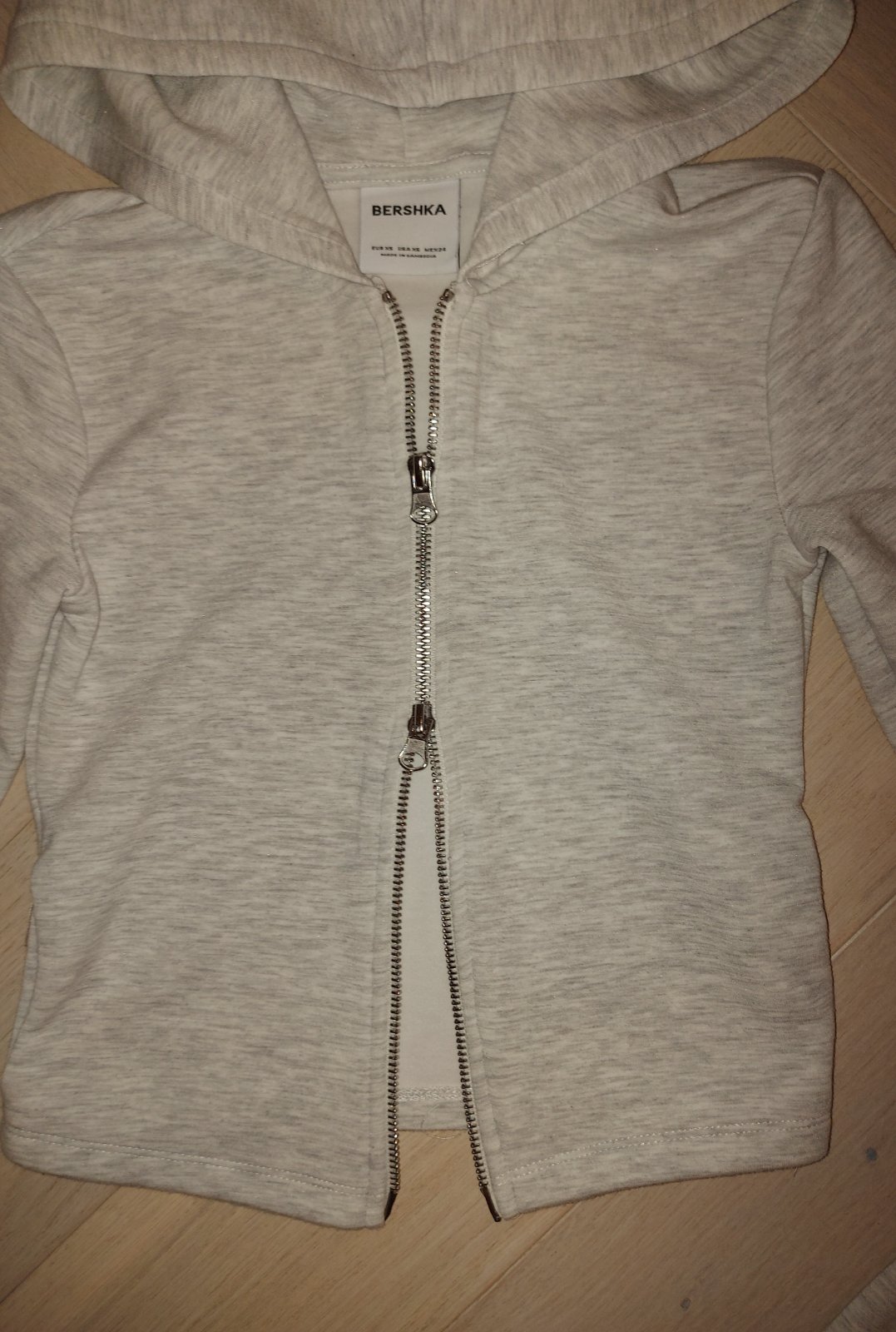 Ponúkam veľmi peknú mikinu svetlosivej farby z príjemného jemného materiálu (zmes 48% modal, 44% polyester, 8% elastan).
