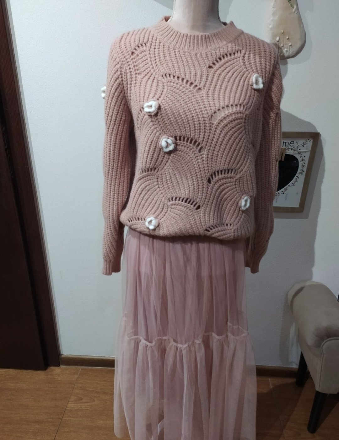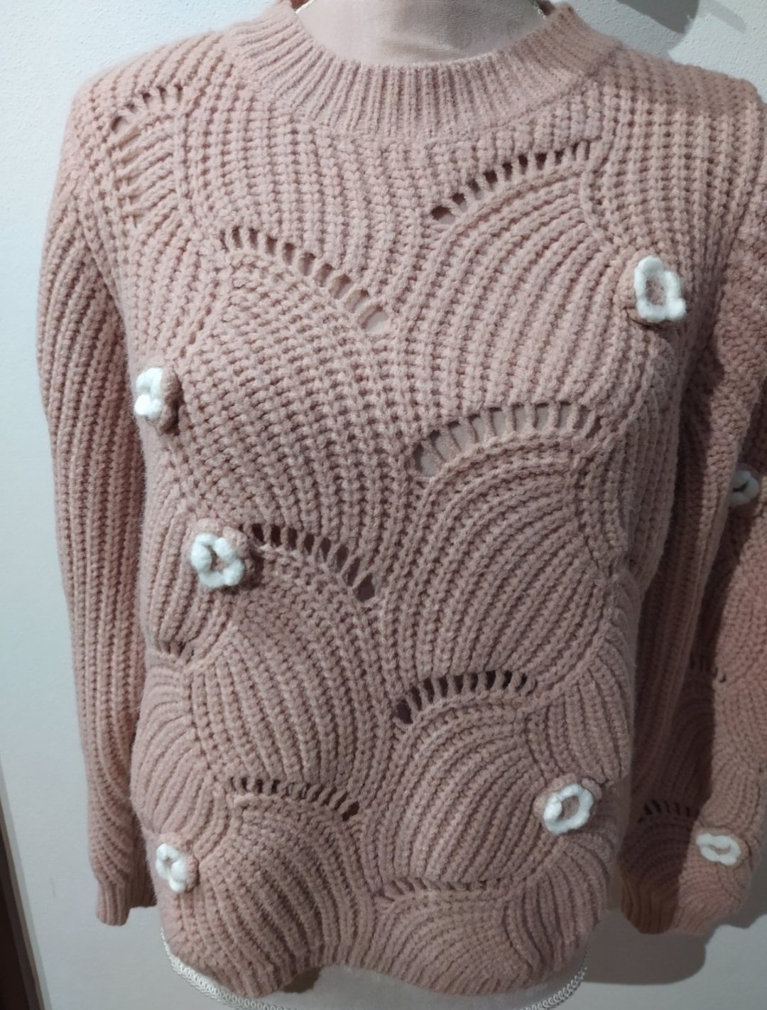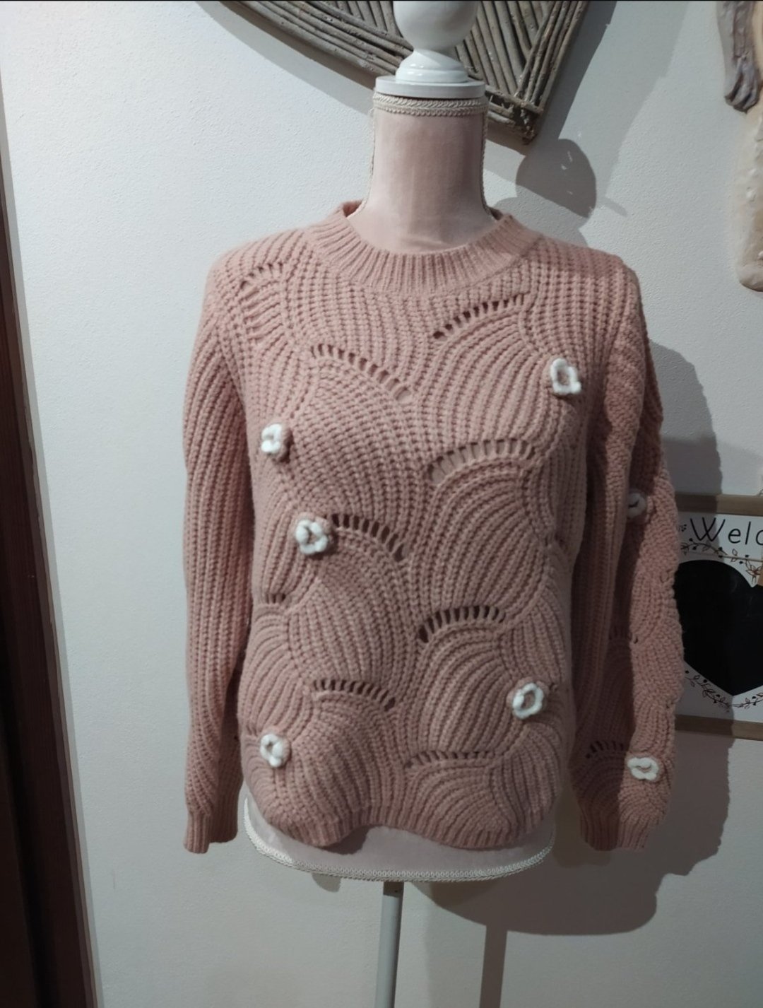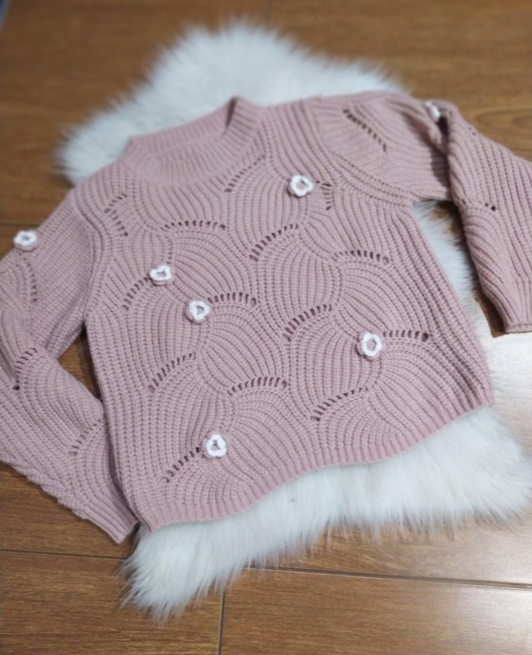 Krásny dierovany svetrík,zdobený hackovanymi kvetmi.Oversize strih.Vel Uni vhodný pre veľ S-M