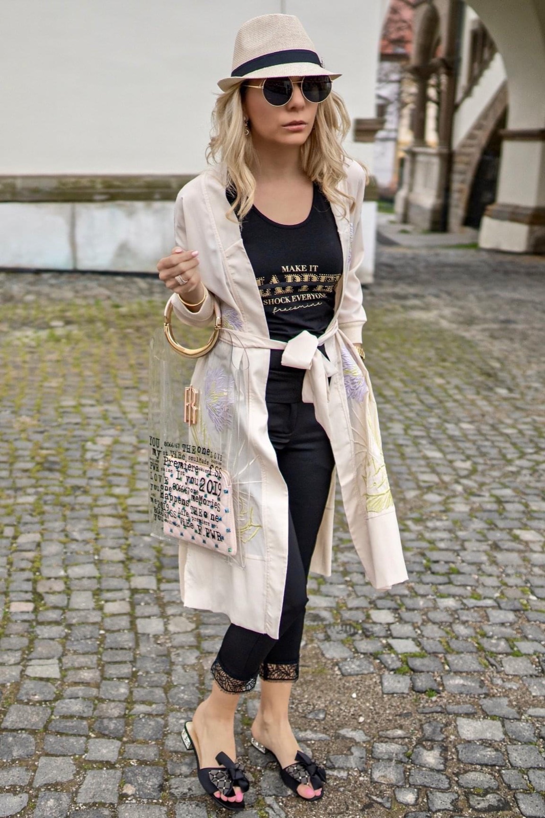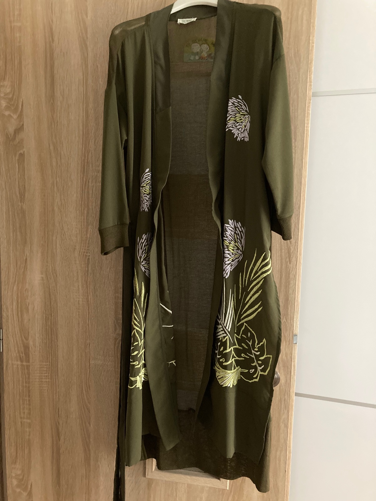 Pekný krémový, s pomarancovo/ružovým napisom. Výborný stav. Oblečený len dcerou 2x. Dĺžka 63cm, šírka pod pažami 2x 39cm , rukáv od našitia limca 71/72cm spodný rukáv 56cm