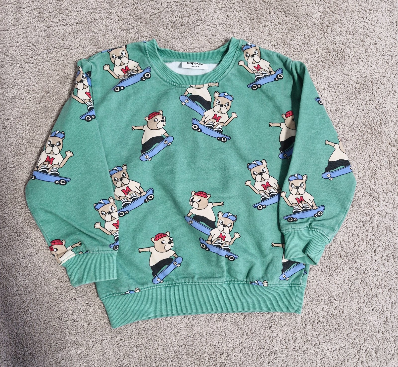Mikina vo velkosti 98/104, farba uz troska vyblednutejsia, ale bez dier a flakov