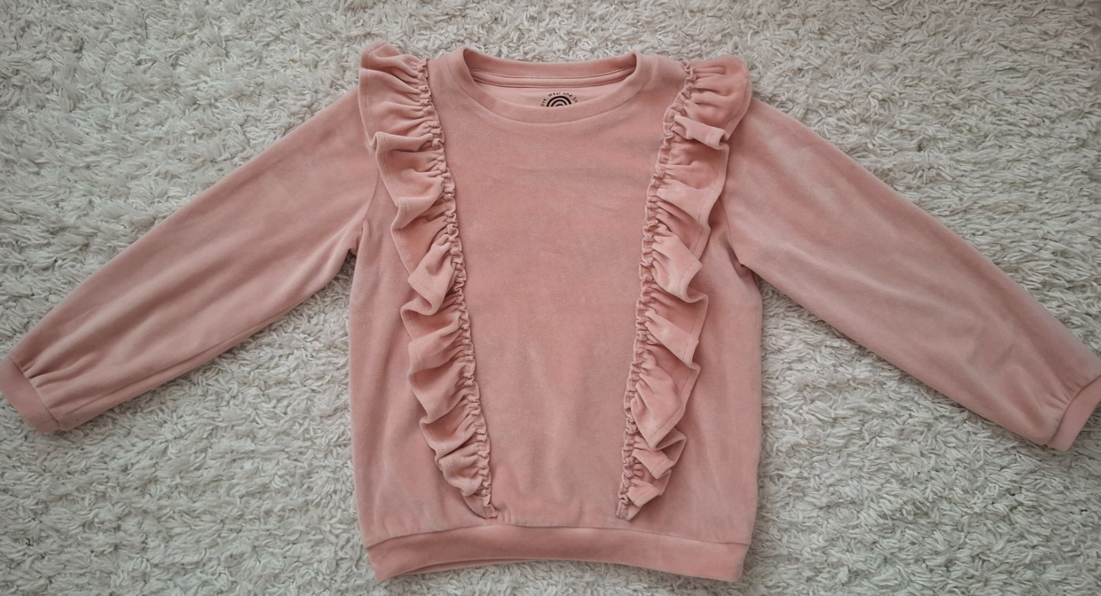Krásna zamatová mikinka v pudrovoružovej farbe. Značka F&F velkosť 122. Výborný stav.