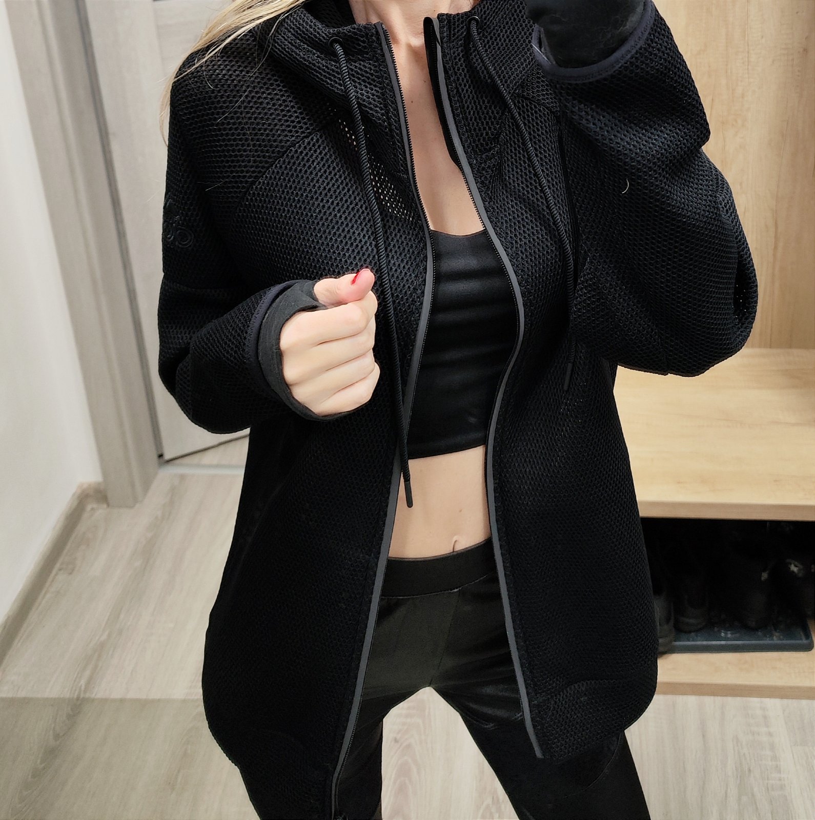 Čierna Adidas mikina (jedná sa o originál), jej súčasťou je pevná sieťovina. Je to pánske L-ko, ale pre ženy ju odporúčam ako oversize (viď fotky).