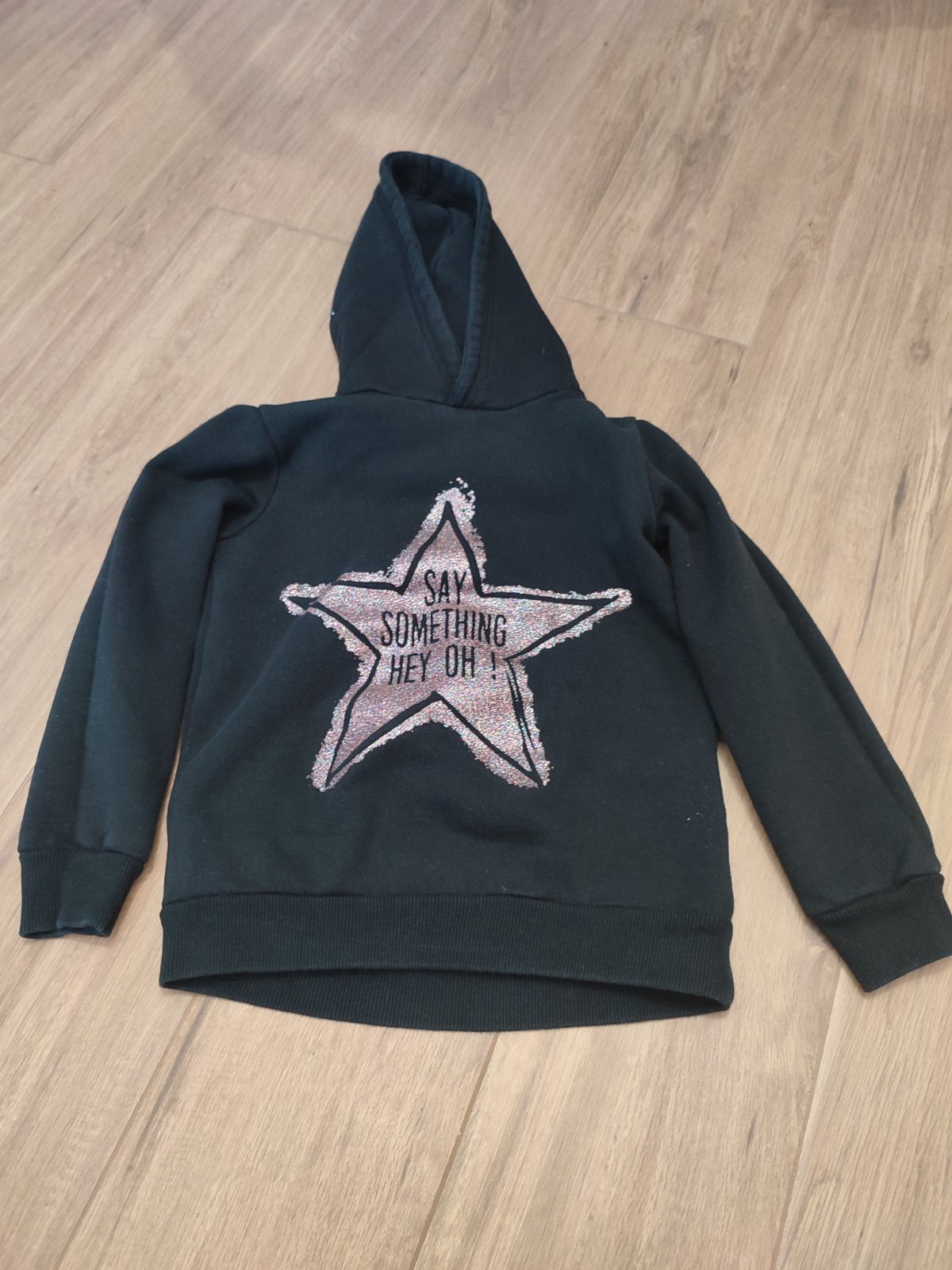 Mikinka bola asi 3x oblecena, je ako nova, syta cierna farba, len mi to neslo lepsie odfotit.
