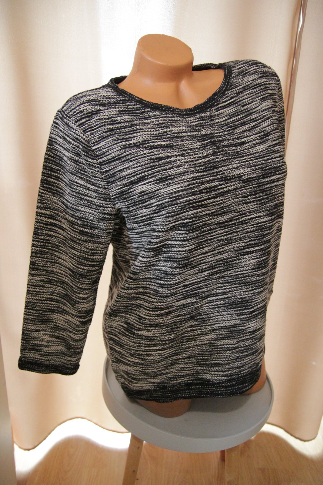 Čierno krémový pletený svetrík H&M, veľkosť M.