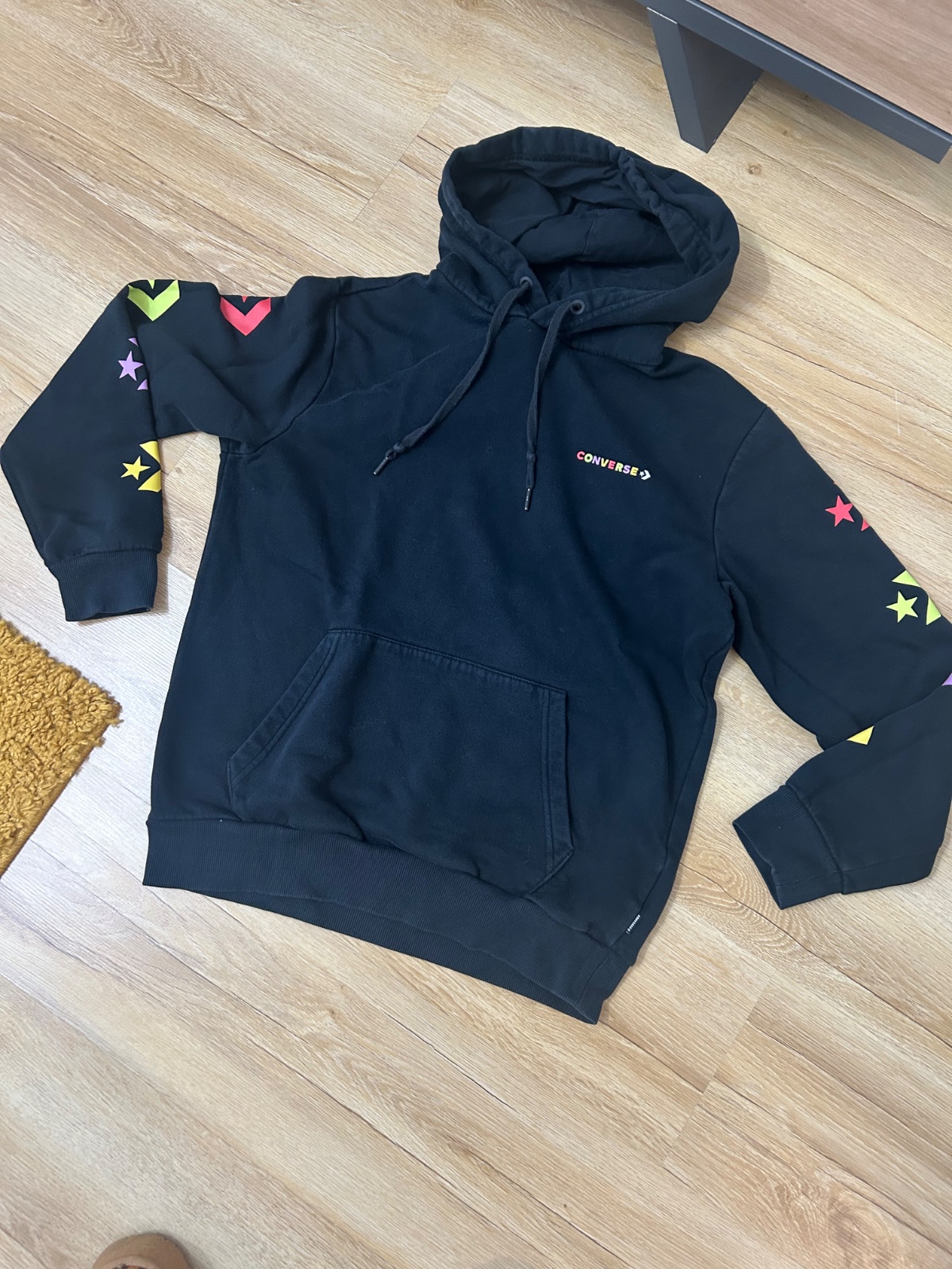 Predám originál mikinu CONVERSE , veľkosť S, oversize. Oblečená 2x, nepoškodená ako nová. Vhodná skôr pre "plno štíhlu tínedžerku"