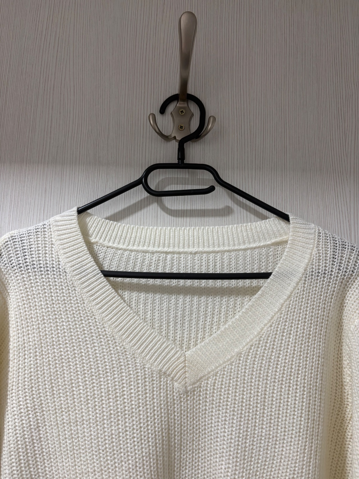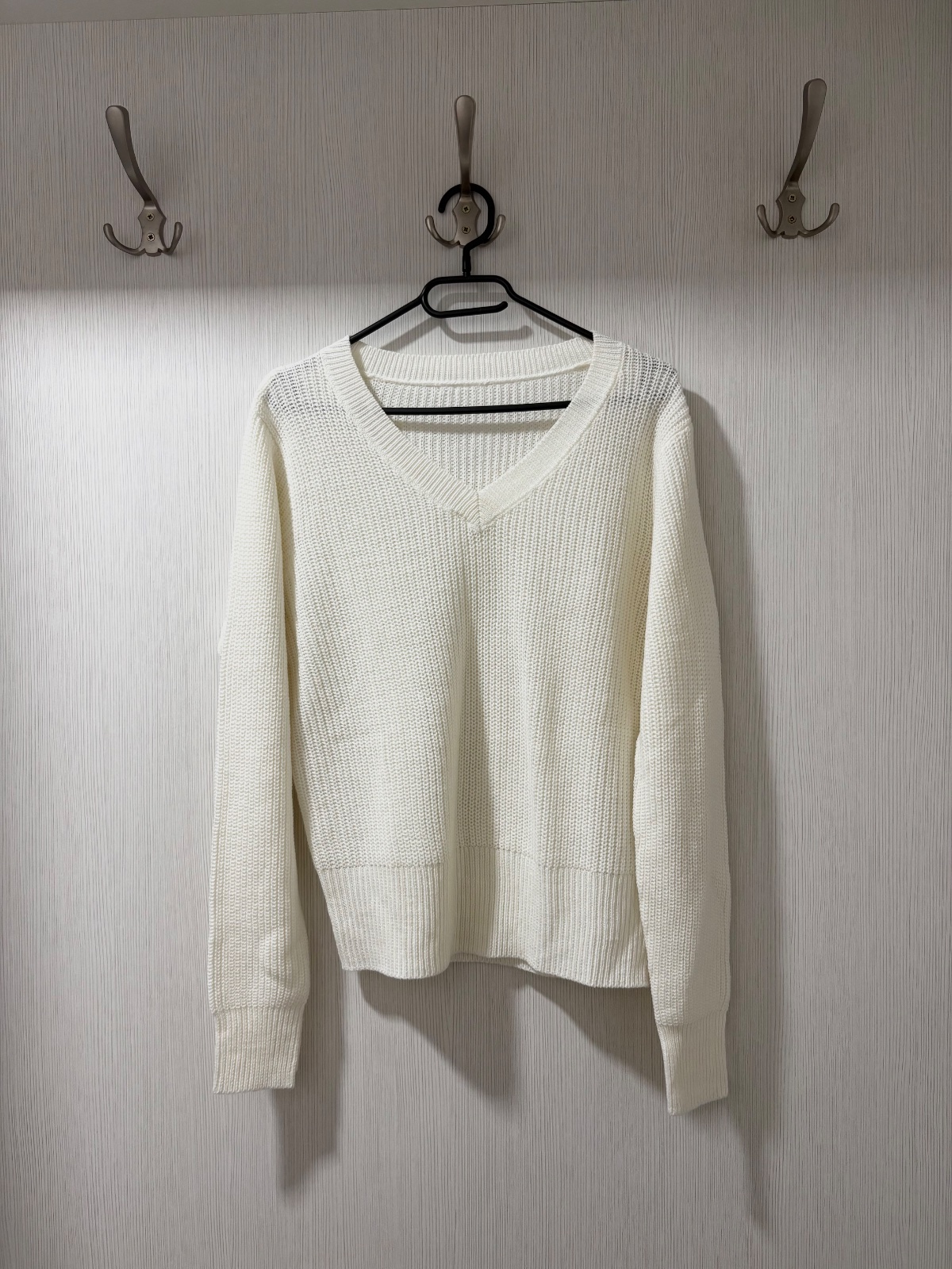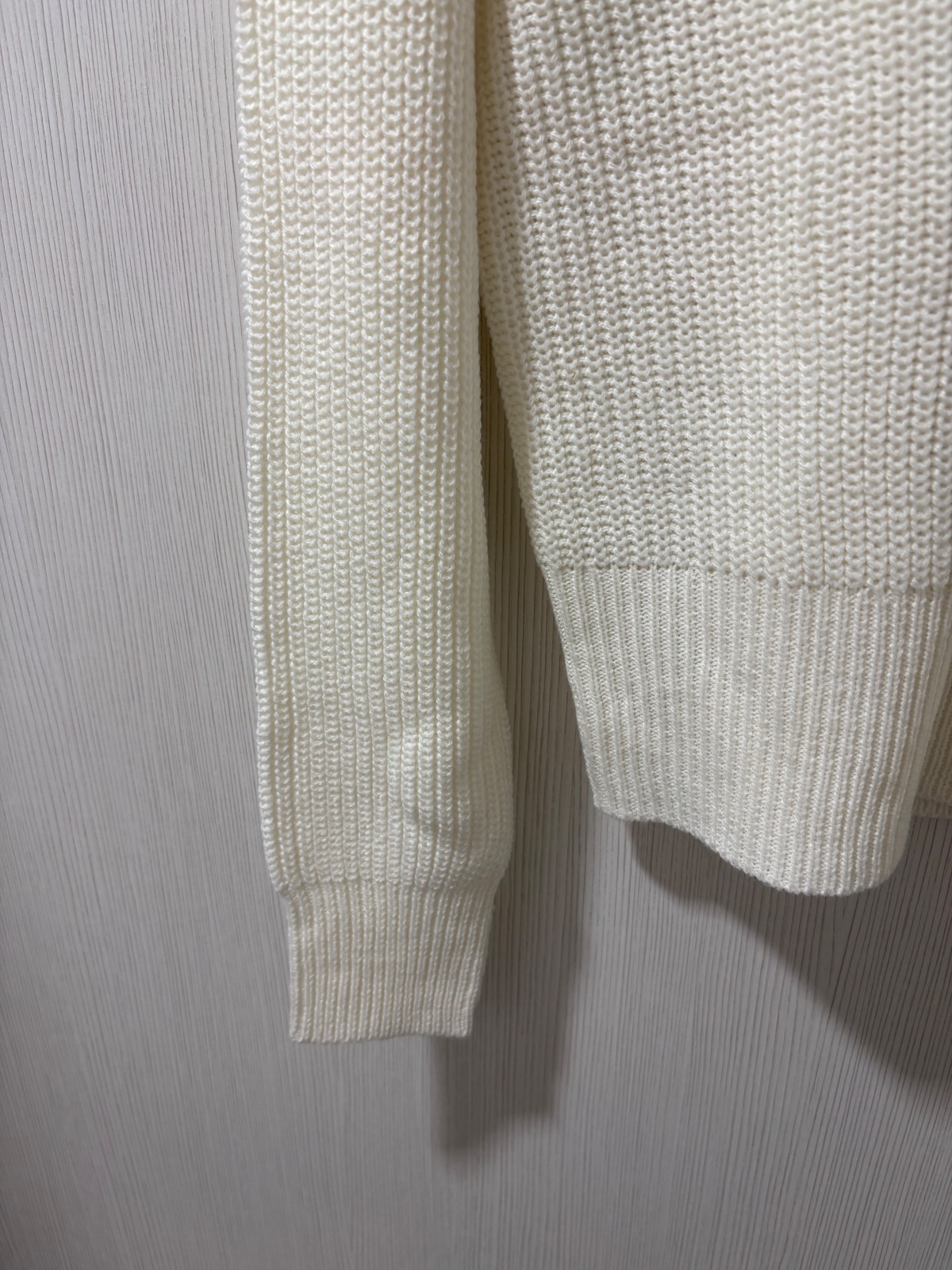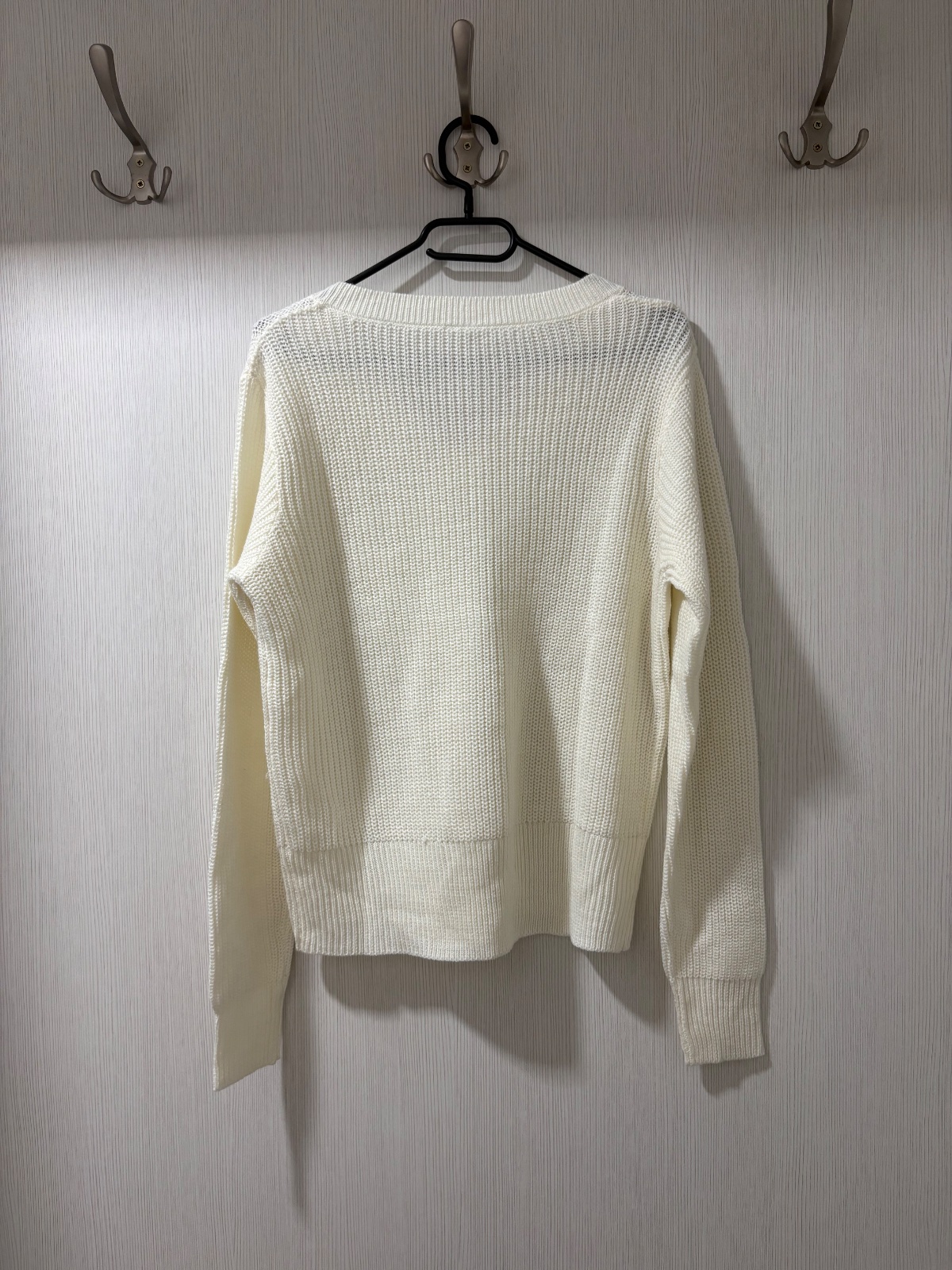 Krémový pulover, veľkosť M, mäkký na dotyk (bohužiaľ neviem zloženie, štítok je odstrihnutý). Celková dĺžka 59cm, dĺžka rukáva 62cm, šírka v podpazuší aj spodný lem 45cm. Málo nosený.