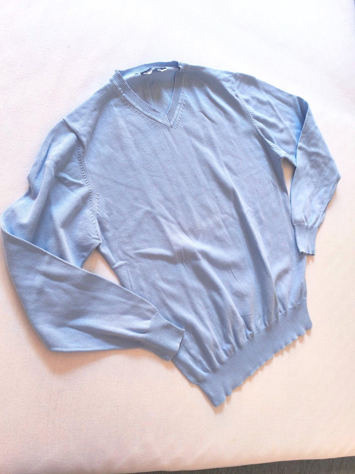 pekný bledomodrý pulover terranova, veľkosť M, dlžka 59 cm, rukáv od krku 77 cm, má žmolky od prania
