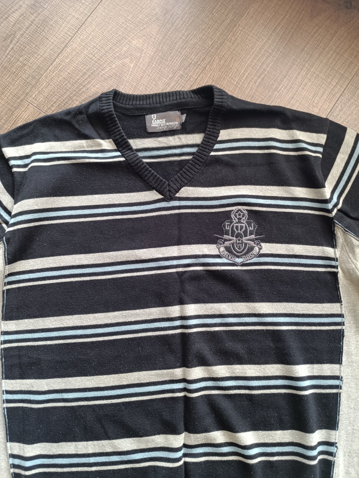 Športovo elegantný sveter, manžel dostal, no vôbec taký štýl nenosí, tak len visí v skrini, oblečený raz. veľkosť je XL. Cena 7,90 €.