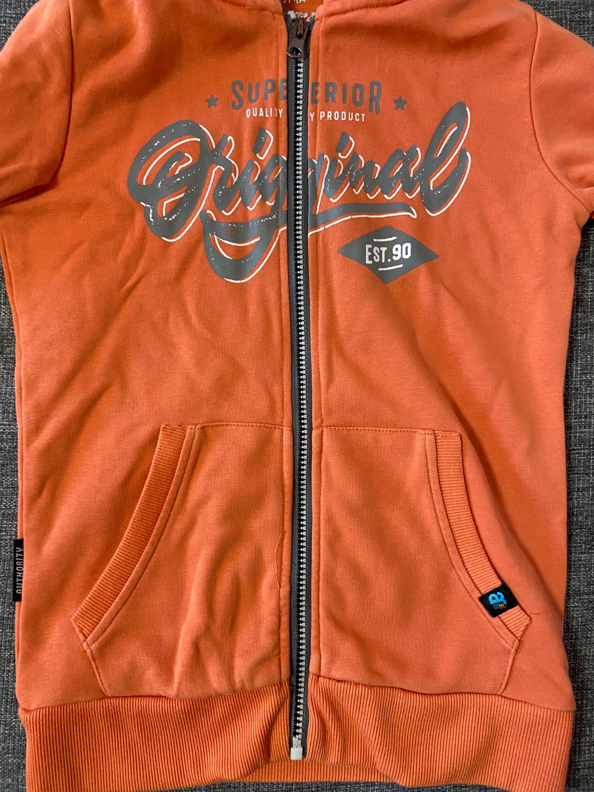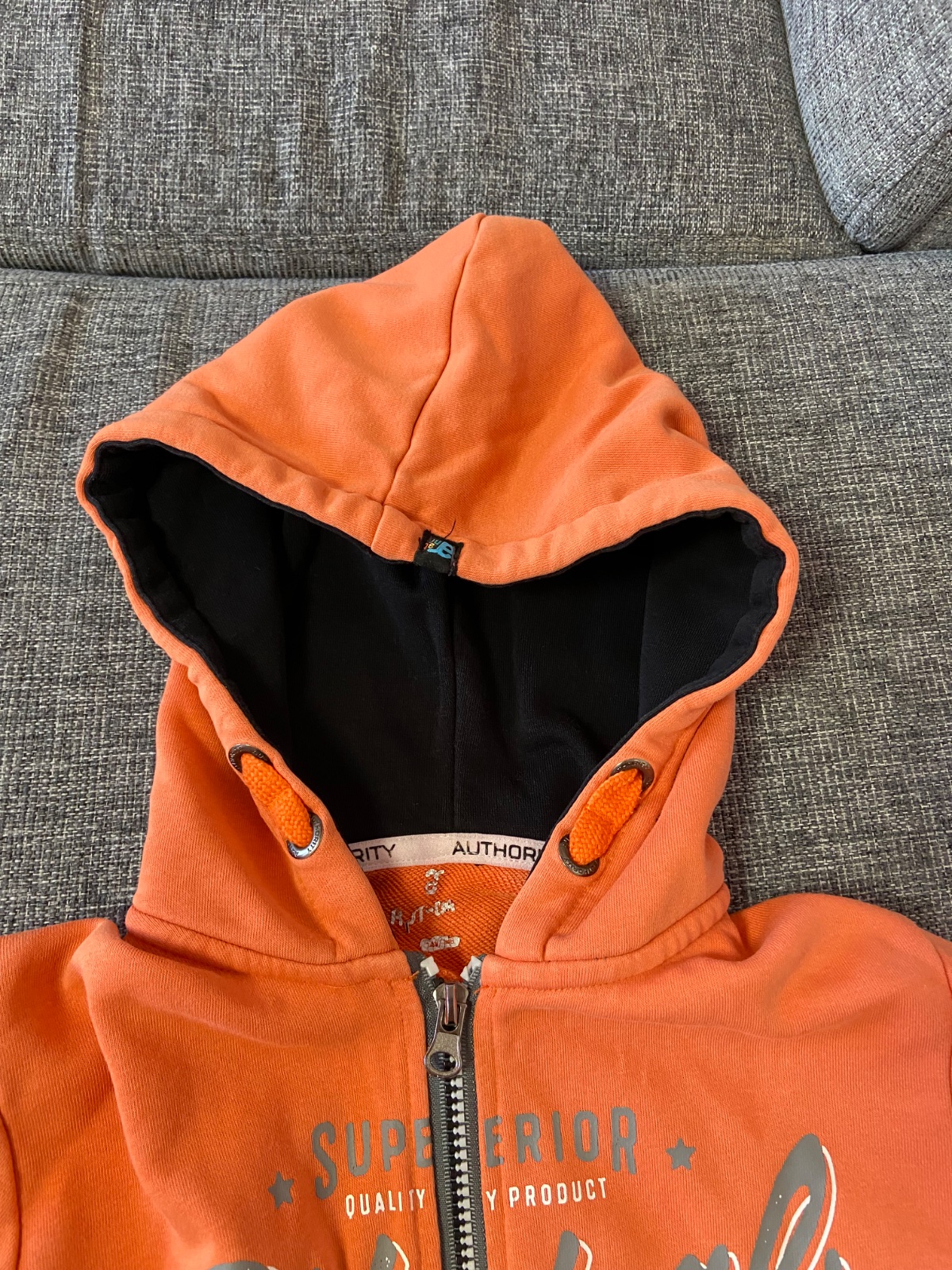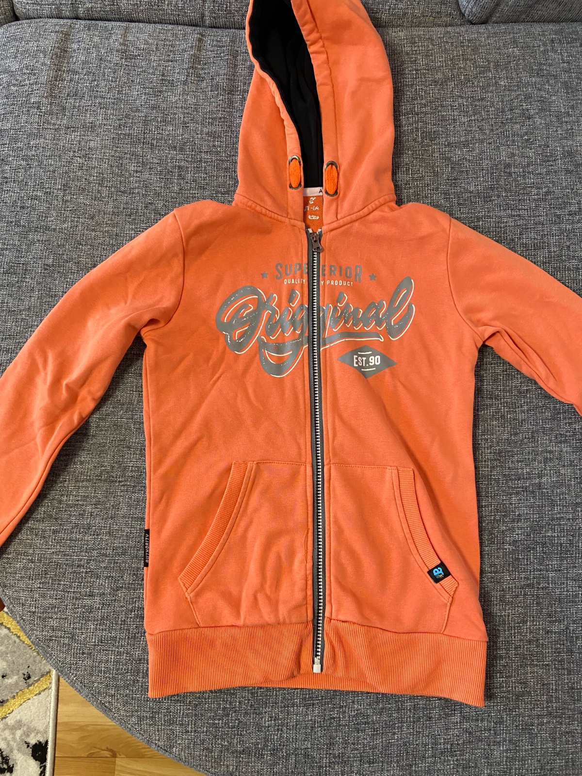 Mikina Authority veľ.140/146.Farba nieco medzi oranžovou a lososovou.Vhodná pre chlapcov aj pre dievčatá,my máme chlapca.Rozmery-dĺžka:57cm,rukáv od krku hore:61cm,šírka v podpazuší-41cm.Bez akéhokoľvek poškodenia