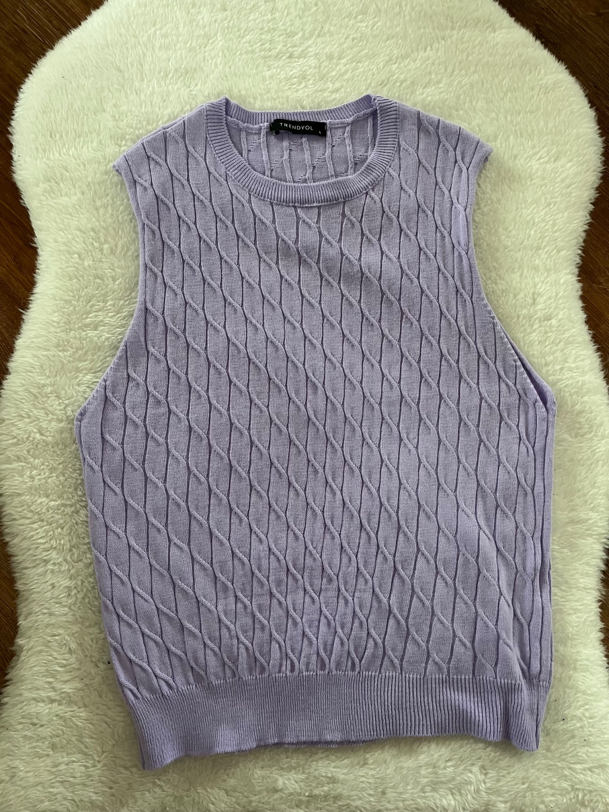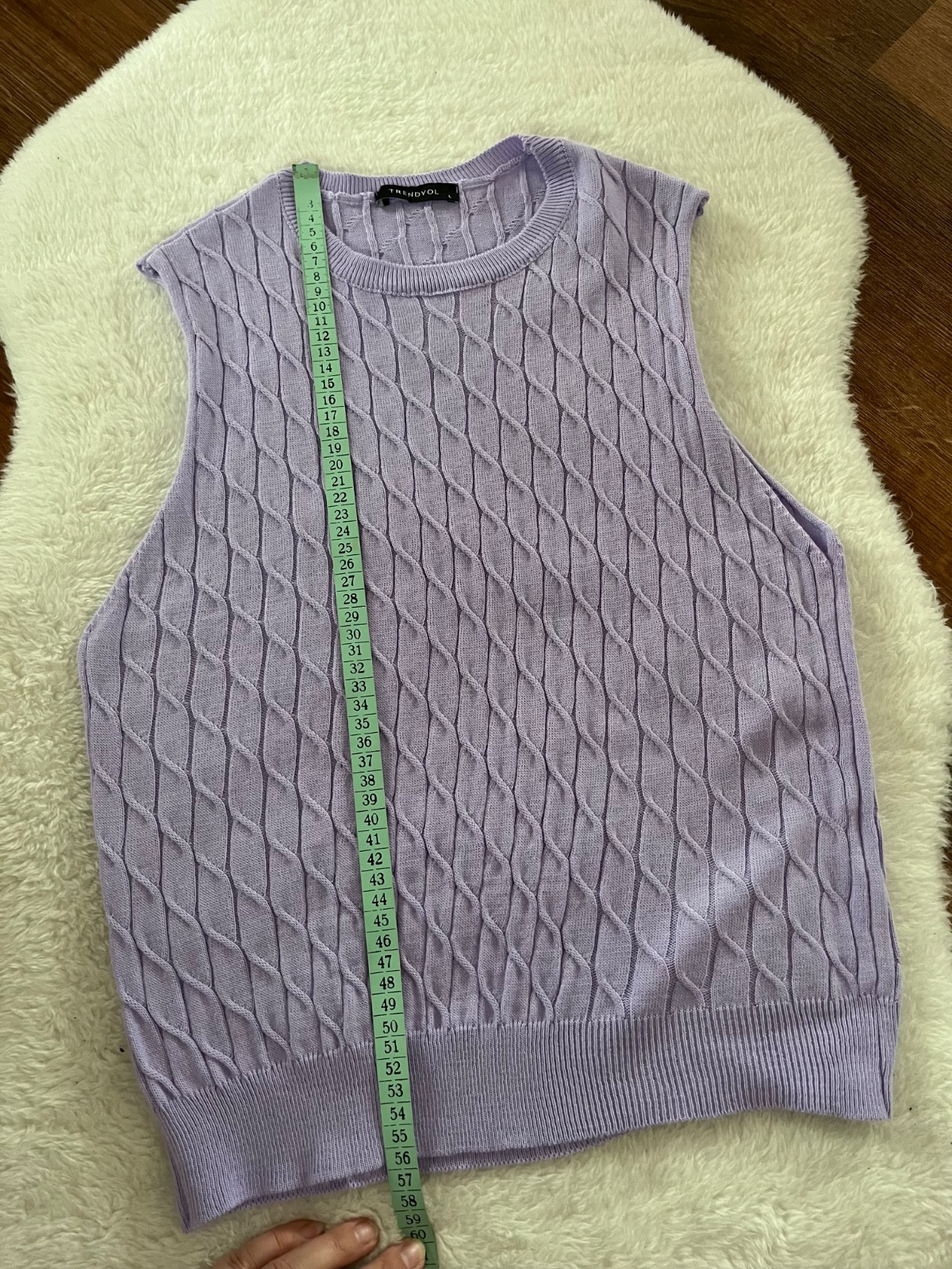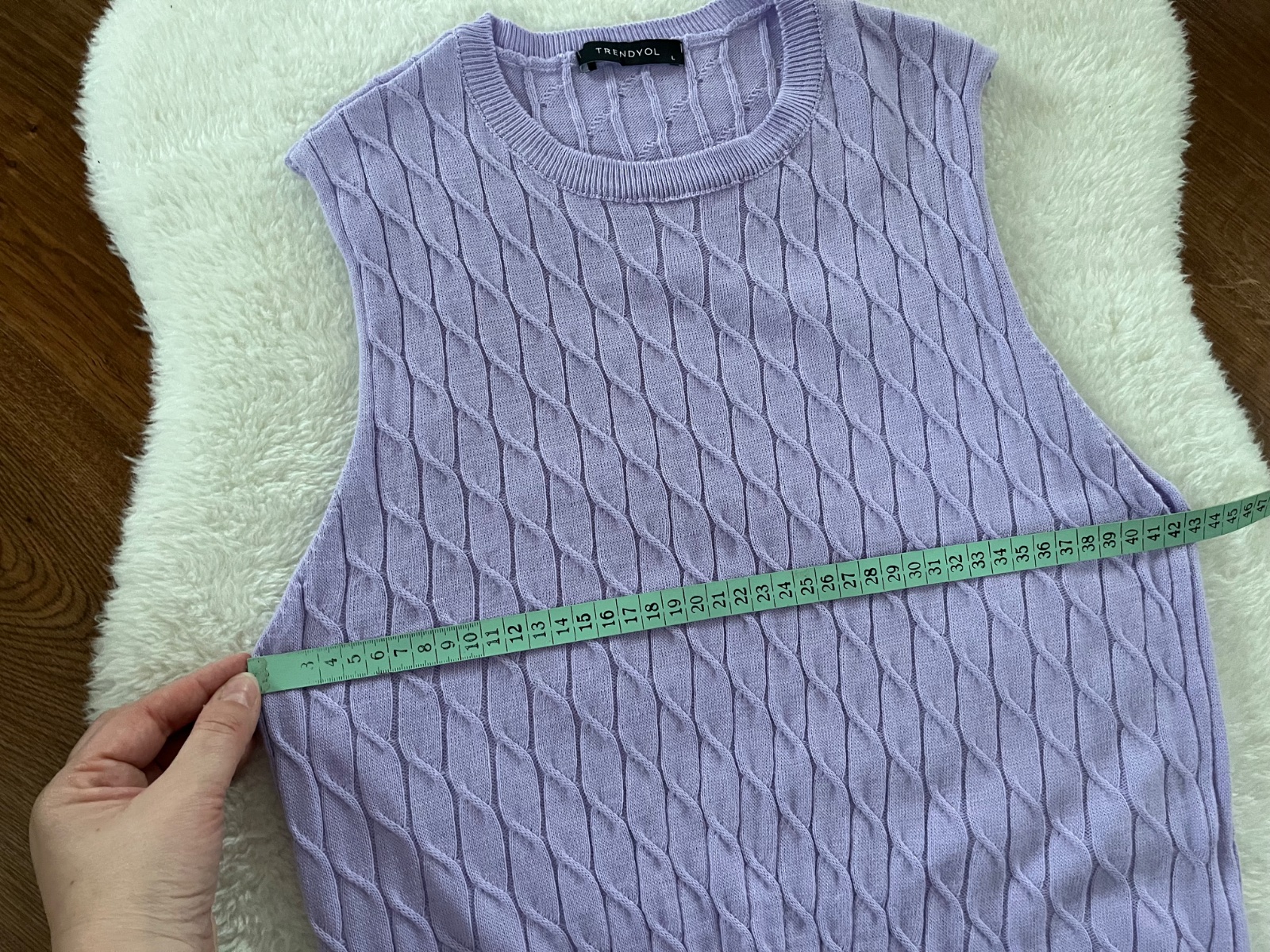 Krásna pletená vesta vo veľkosti L, orientačné miery na foto, ale je elastická.
