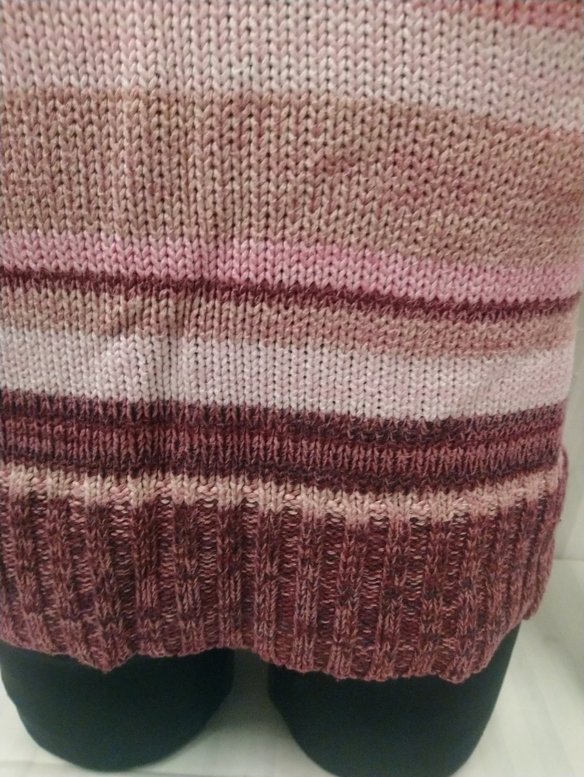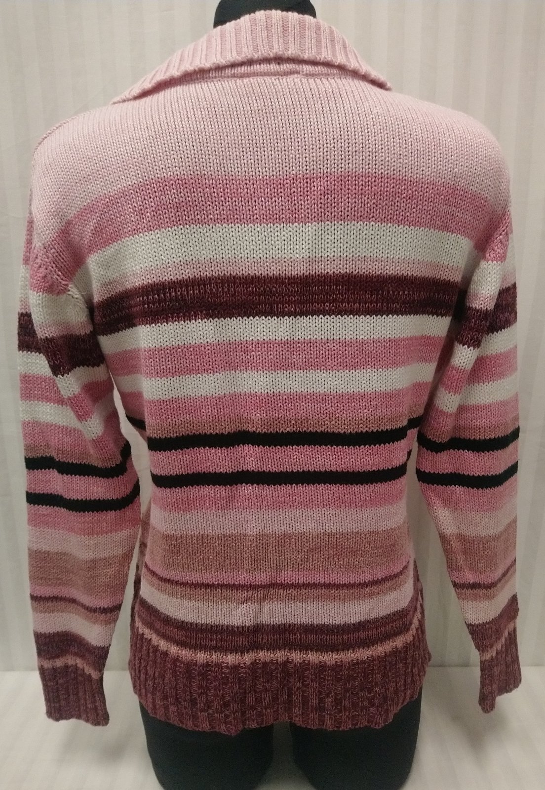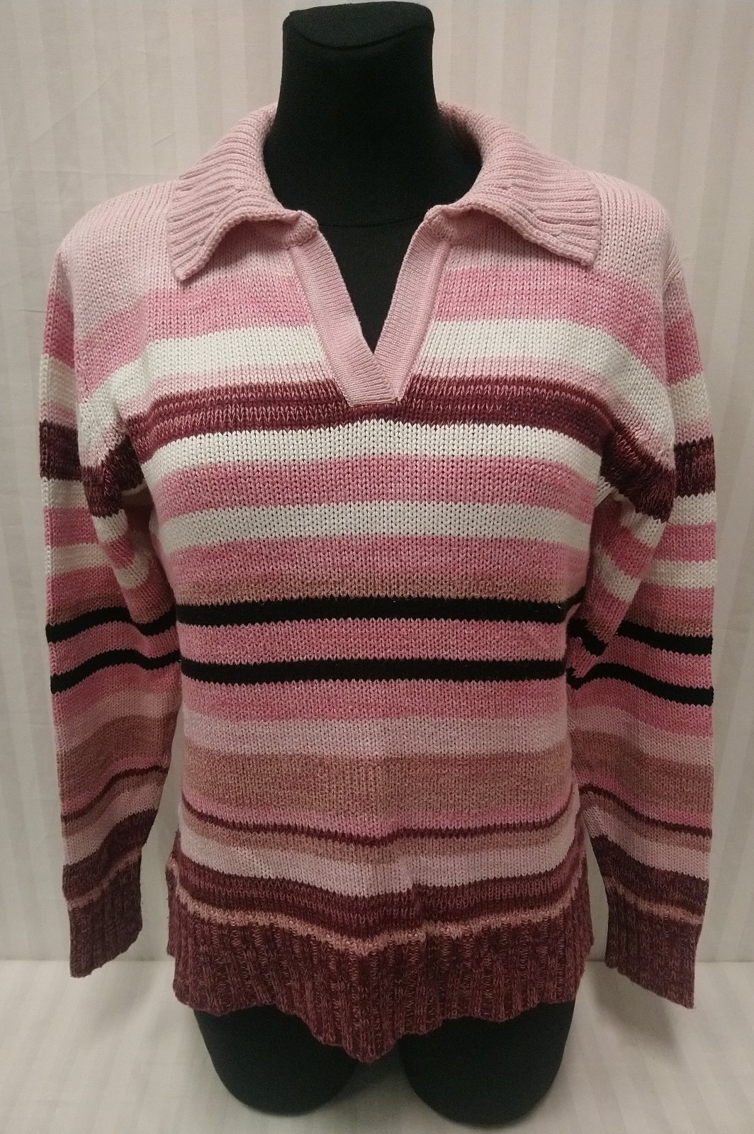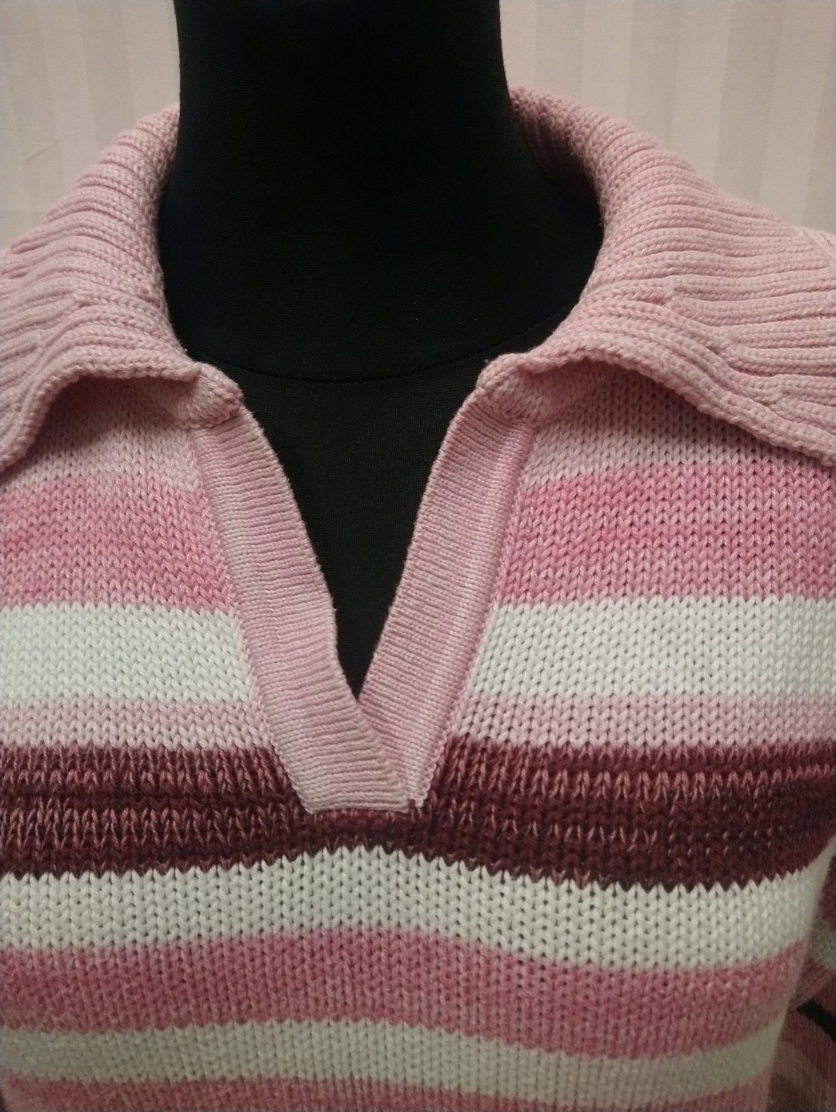 dámsky pásikavý sýto ružový a farebný pulóver s golierom,