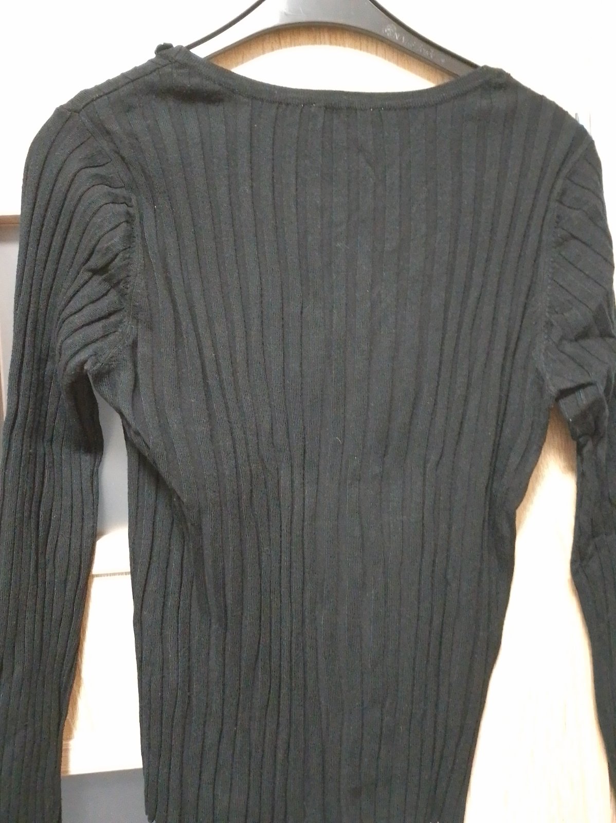 Pekny, tensi kardigan bez zapinania, pisu velkost M, ale je to skor L, mne je velky. Kupovany tu na MK.