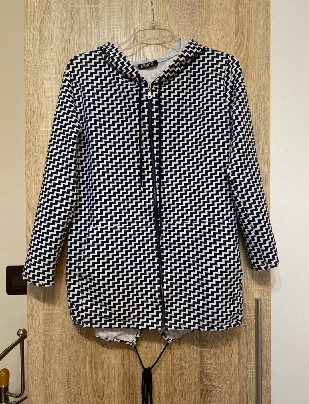 1 krát oblečené, bez poškodenia. Šírka pod pazuchami 62x2cm, dĺžka 73cm, rukáv od krku 73cm. Zloženie: 95% polyester, 5% elastan +poštovné