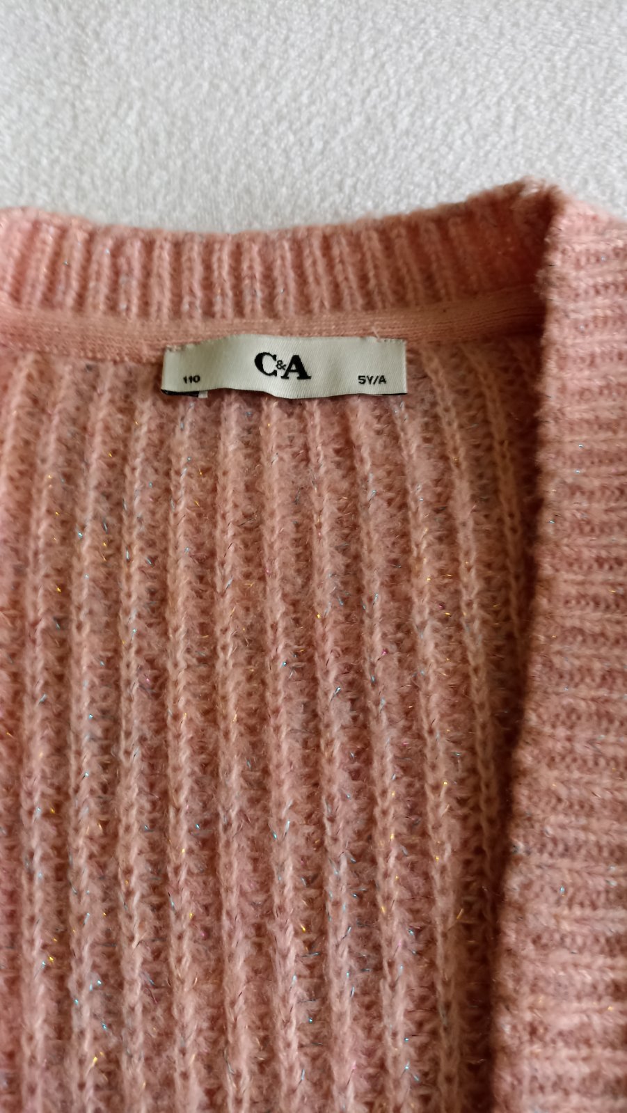 Svetrík zn. C&A pre dievčatko na 4-5 rokov. Velmi dobry stav. Š: 33 cm D: 37 cm rukáv 39 cm