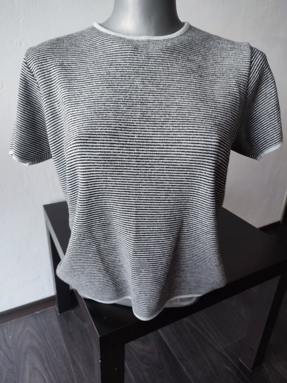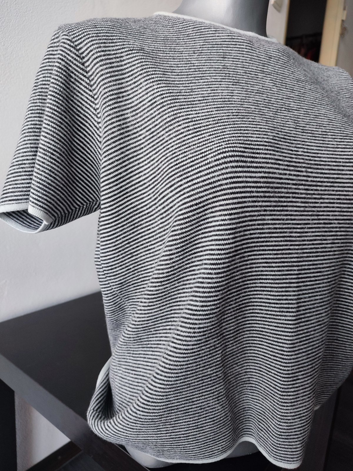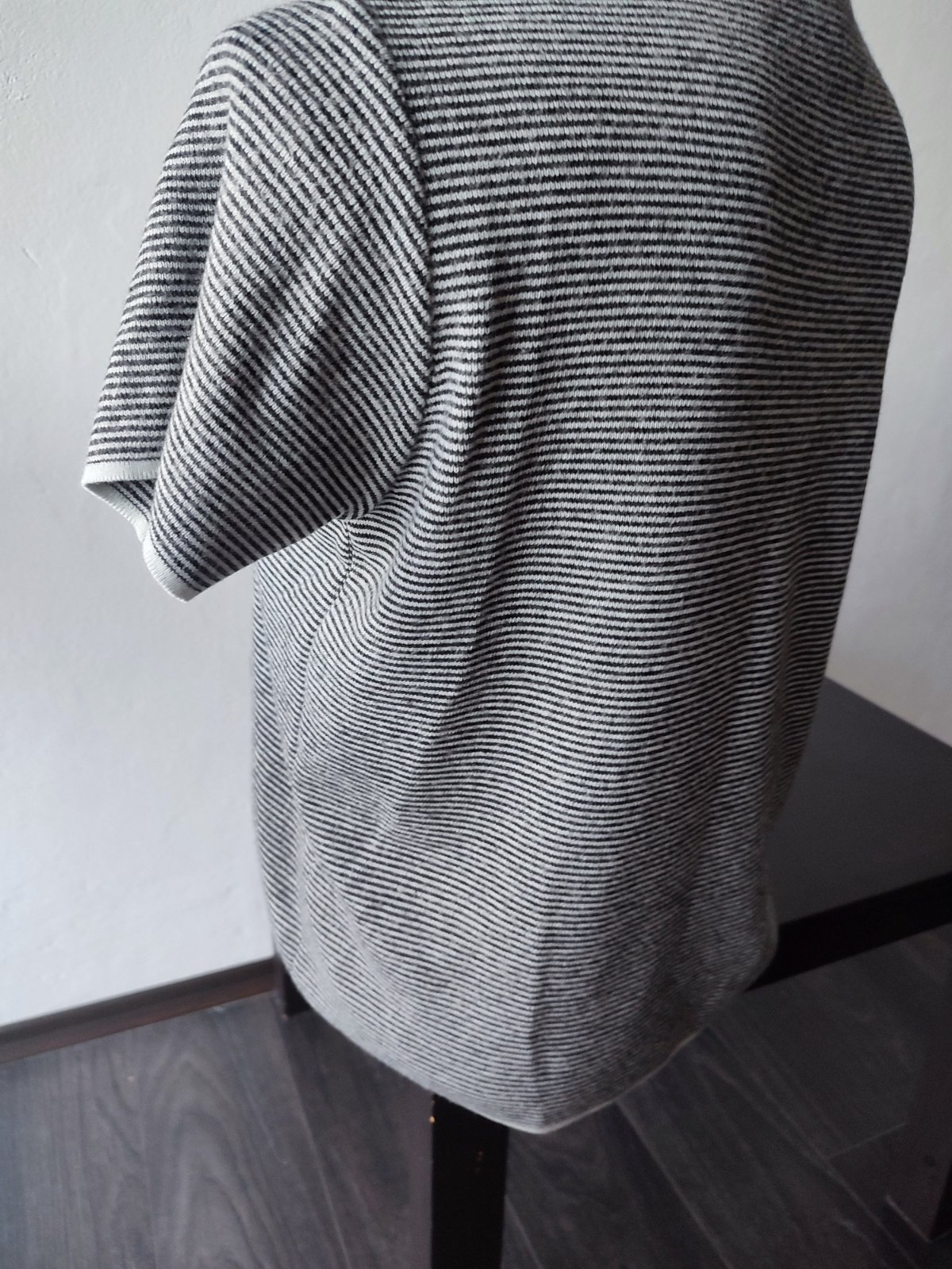 Minizmolky hlavne v spodnej casti - zohladnujem v cene. Inak je prijemny, tenky a stale pekny a trendy :-) Zadna d 67, š prsia 2 x 45-51, rukav od krku 53 190g