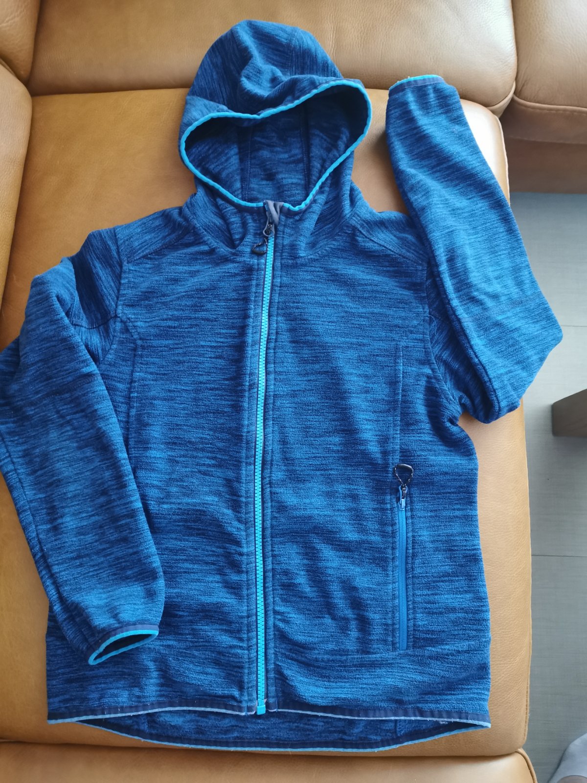 Mikina z tenšieho flisu, pekný nosený stav. Dĺžka je 50cm, hrudník 2x42cm, rukáv 51cm.