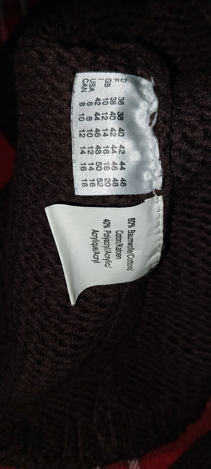 Nosený, zachovalý svetrík. Velkosť píše 36, ale podla rozmerov je to 38. Dlžka 71cm ,cez prsia 50 cm