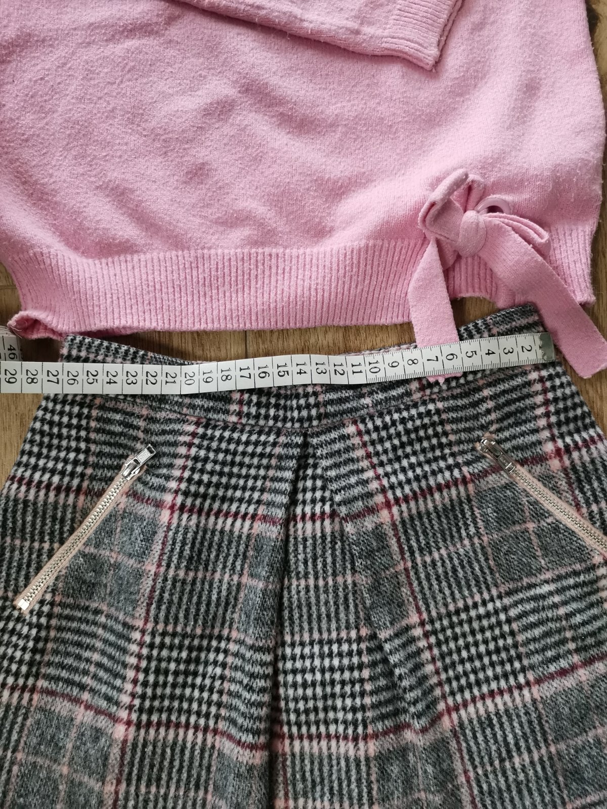 Suprava svetra a sukne. Na svetri su zmolky.