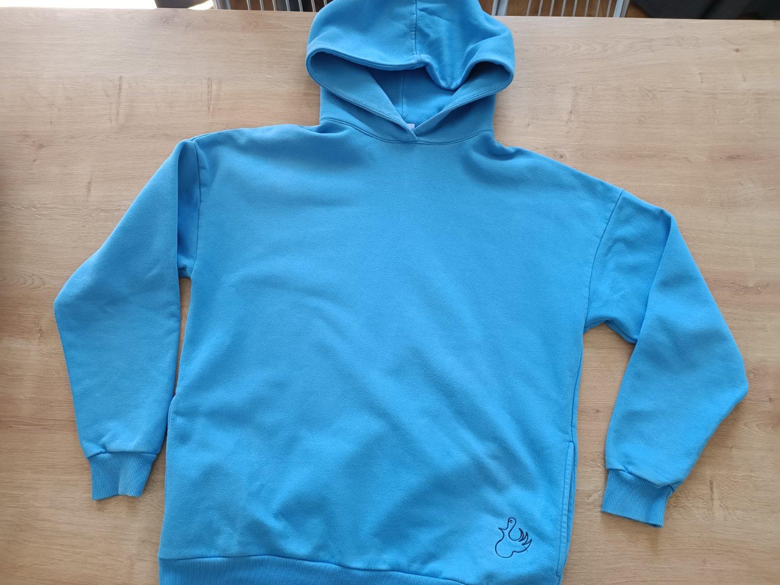 Predám málo nosenú mikinu bez poškodenia. Štítok s veľkosťou som odstrihla, ale nosím Sko a je mi dobrá, mam ešte ruzovu tak túto modrú posuvam D59 Š45 R 68
