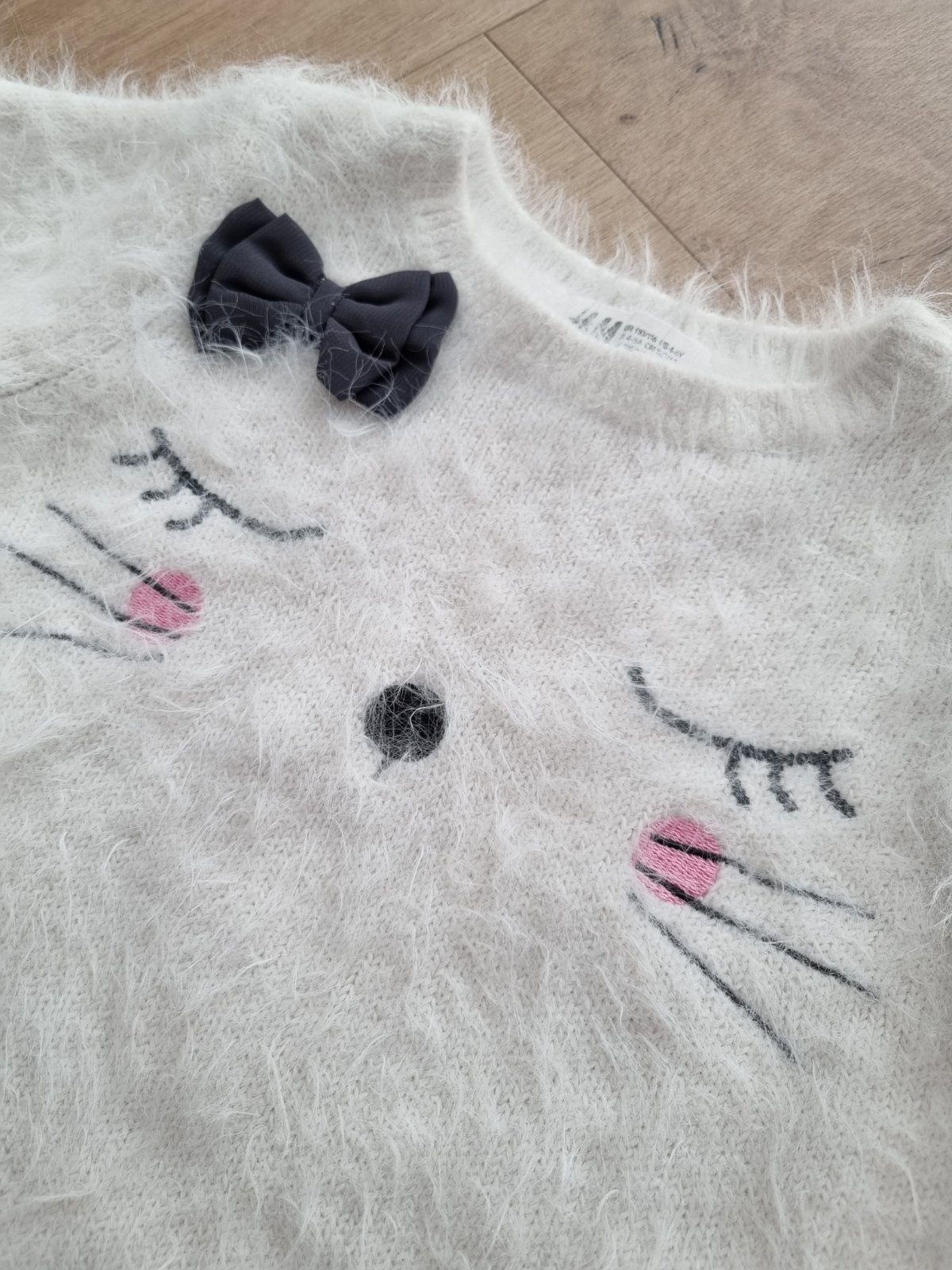 Svetrik s macickou par krat obleceny, vo velmi peknom nosenom stave - bez vad a poskodeni